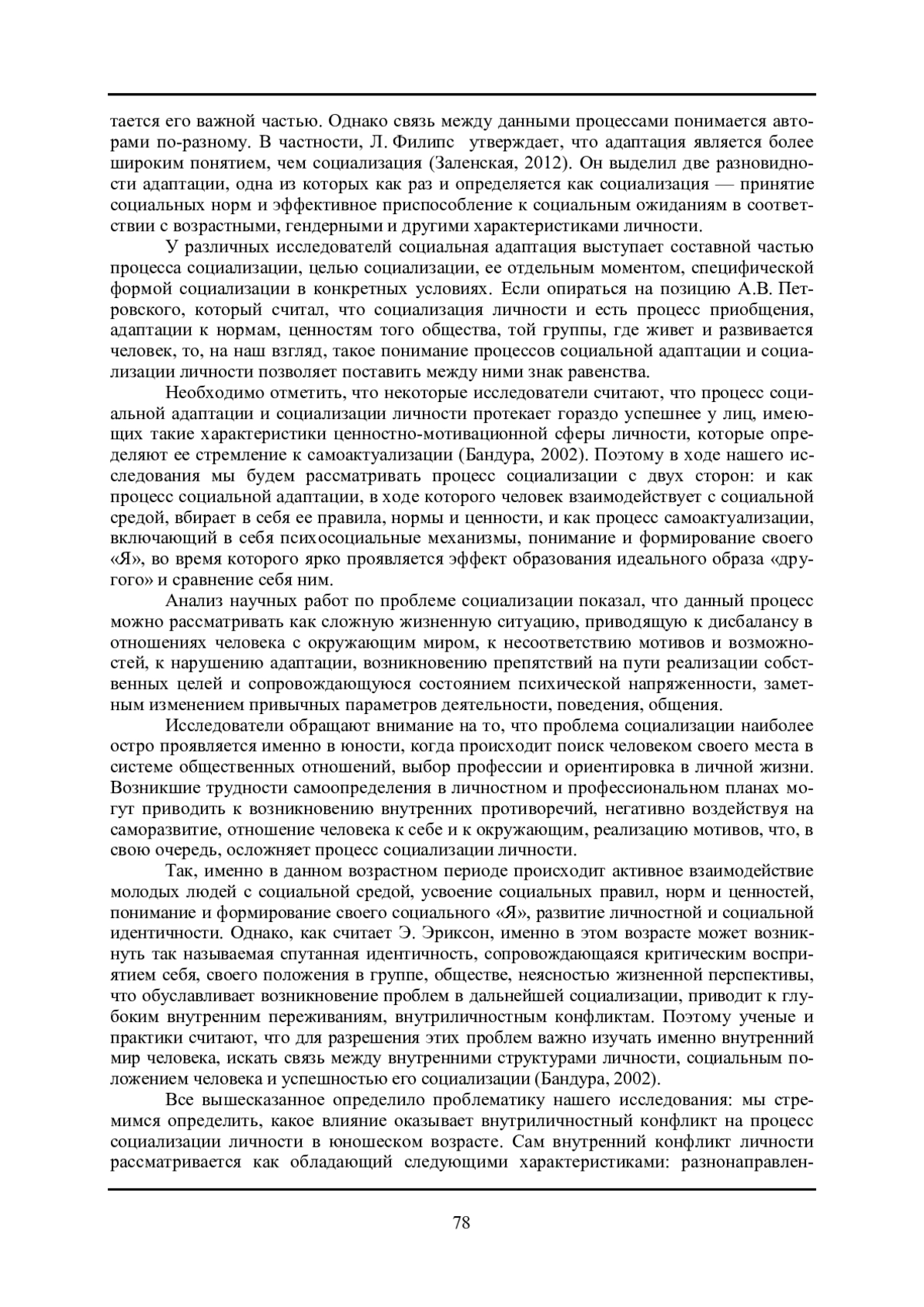 Внутриличностный конфликт предполагает столкновение и противоборство ценностей, потребностей, целей и социальных ролей через призму личностной траектории и жизненного сценария человека. Причины внутриличностных конфликтов у молодежи и процесс личностной идентификации и самоопределения (жизненные стратегии, первичный карьерный сценарий), рассматриваются в связи с идеализированными стандартами успеха и конфликтом установок (традиционных, семейных, общественных).
