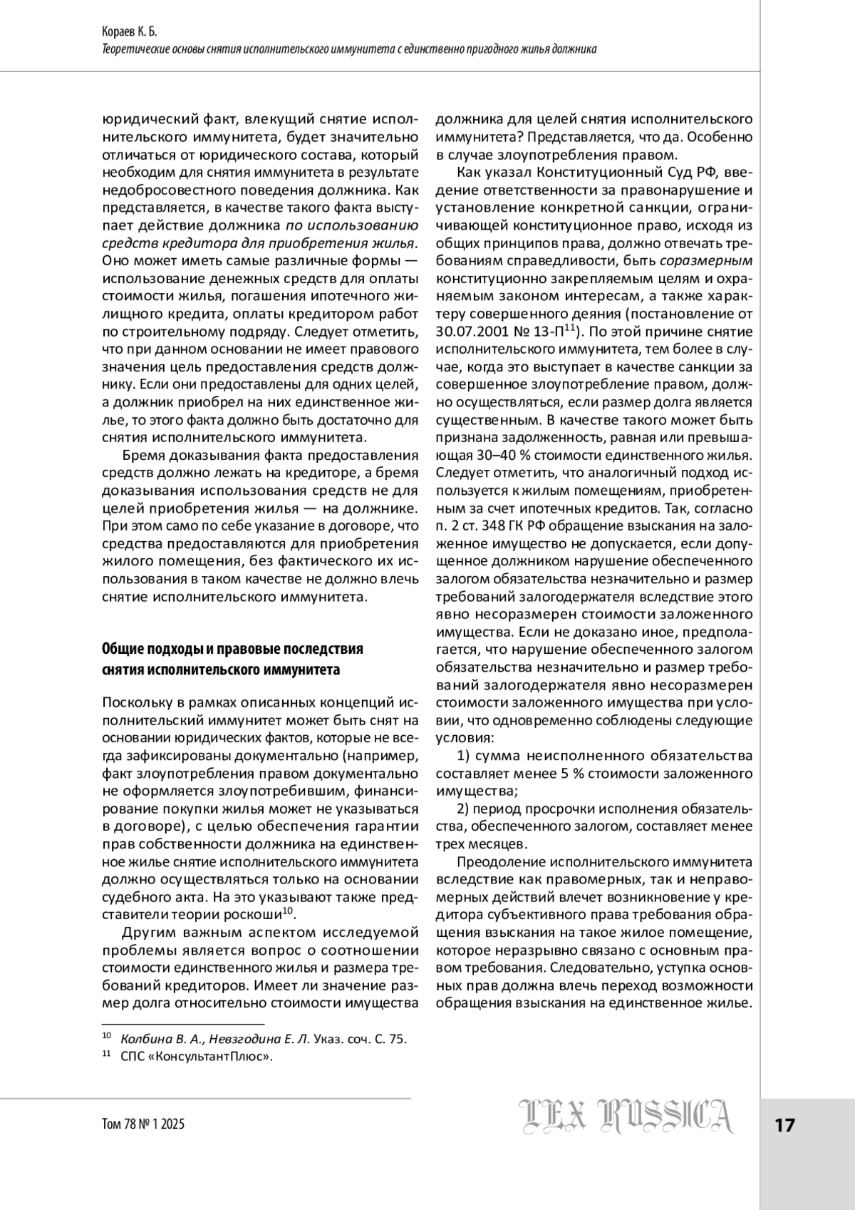 3. Колбина В. А., Невзгодина Е. Л. Обращение взыскания на единственное жилье гражданина при банкротстве // Вестник Омского университета. Серия «Право». 2020. Т. 17. № 1. С. 69-81.