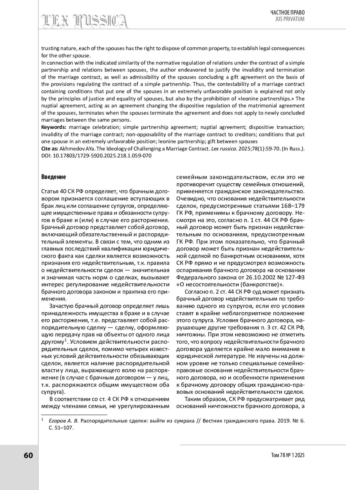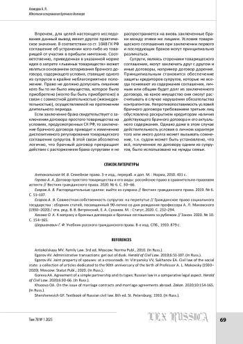4. Егоров А. В. Совместная собственность супругов: на перепутье // Гражданское право социального государства : сборник статей, посвященный 90-летию со дня рождения профессора А. Л. Маковского (1930-2020) / отв. ред. В. В. Витрянский, Е. А. Суханов. М. : Статут, 2020. С. 232-294.