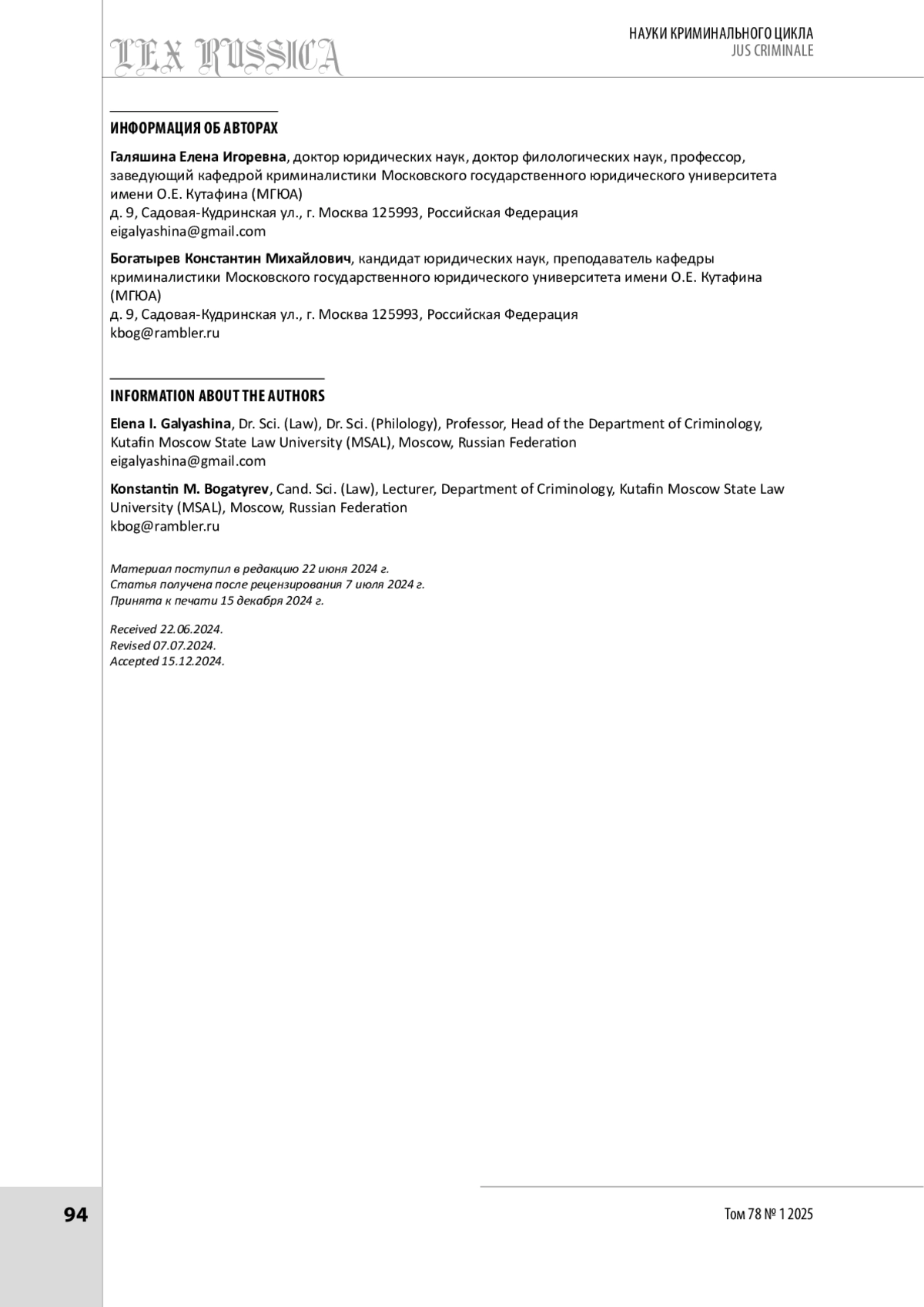 12. Пудовочкин Ю. Е., Бабаев М. М. Современное нормотворчество как основа формирования новой теории криминализации // Lex russica. 2023. Т. 76. № 1 (194). С. 110-125.