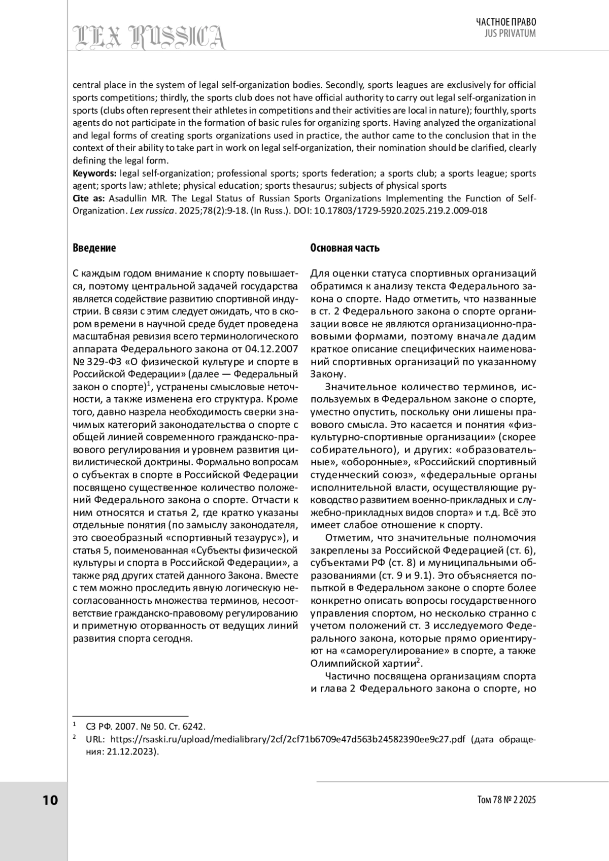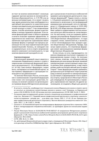 8. Овчинникова Н. А., Каткова В. В. Особенности правового статуса профессиональных спортивных лиг // Актуальные проблемы российского права. 2018. № 6. С. 107-117.