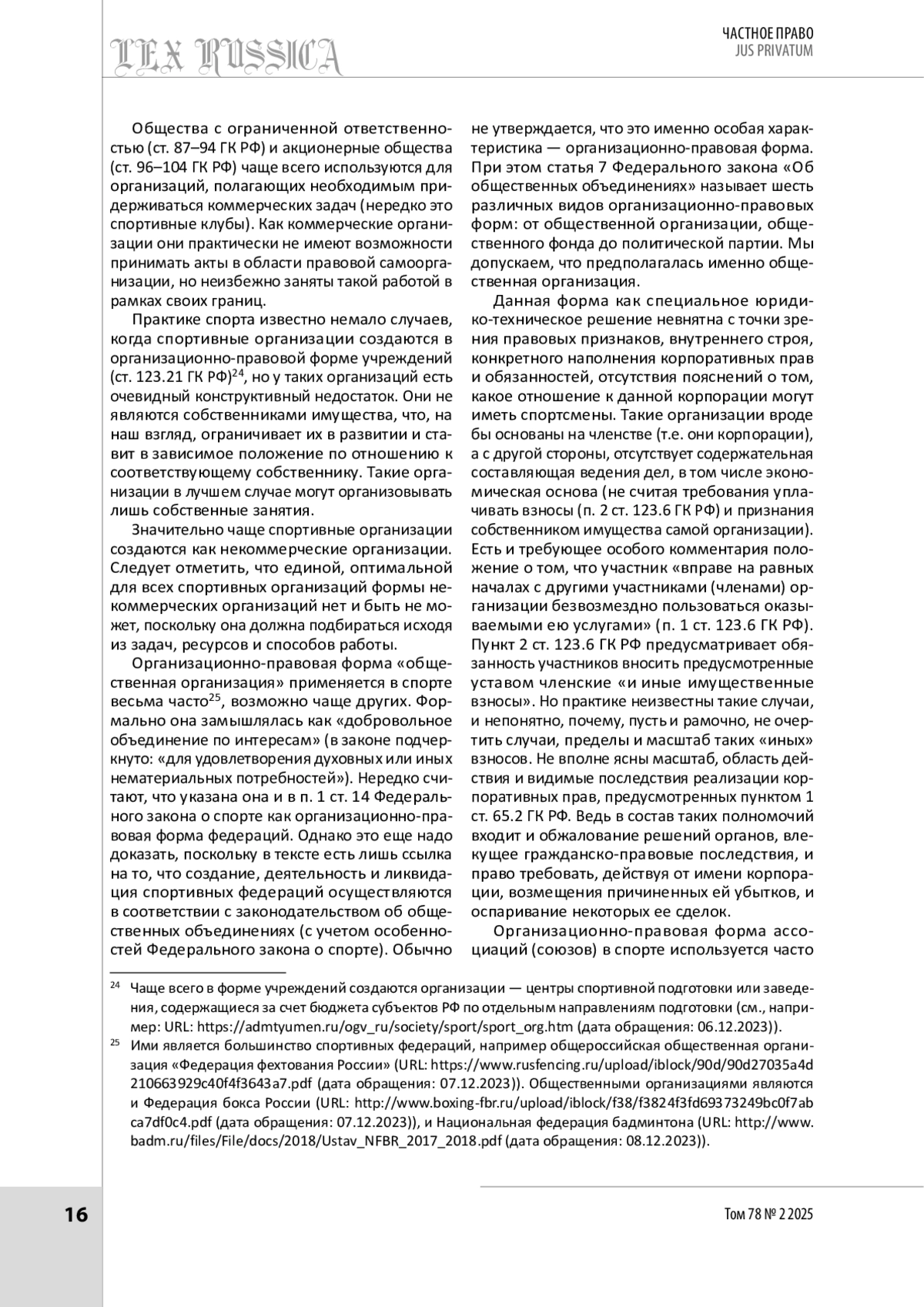 6. Мерзликина Р. А., Бычков А. Б. Физкультурно-спортивные организации в гражданско-правовых отношениях: проблемы теории и практики // Гуманитарные и социальные исследования. 2014. № 2. С. 112-116.