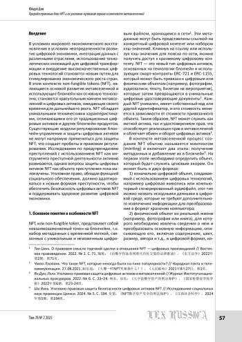 8. Тао Цянь. О правовом смысле торговой сделки в отношении NFT - цифровых произведений // Восточное правоведение. 2022. № 2.
