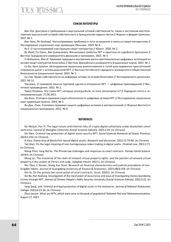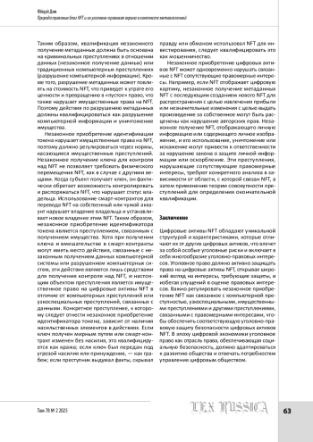 10. Ши Вэнь. Уголовно-правовая защита безопасности цифровых активов NFT // Исследование социальных наук провинции Цзянси. 2024. № 5.