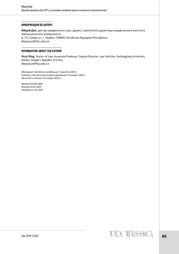 11. Ян Дун, Лэлэ. Уголовно-правовая защита цифровых активов в метавселенной // Журнал Института национальных прокуроров. 2022. № 6.