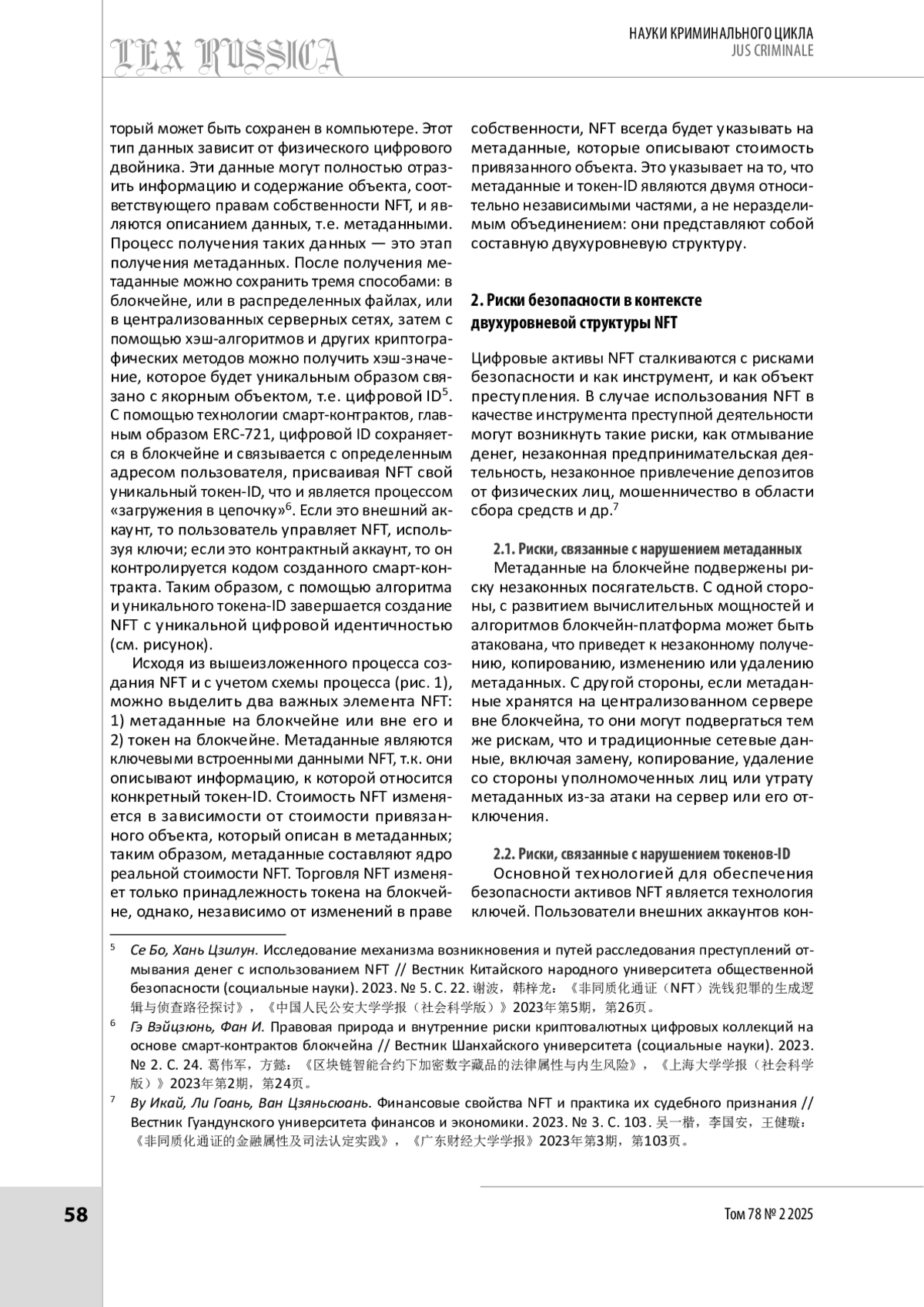 6. Се Бо, Хань Цзилун. Исследование механизма возникновения и путей расследования преступлений отмывания денег с использованием NFT // Вестник Китайского народного университета общественной безопасности (социальные науки). 2023. № 5.