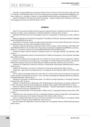 19. Simović M., Šikman M. Efficiency of Criminal Proceedings - Between Expectations and Reality // Journal of Criminology and Criminal Law. 2018. № 56 (3). P. 23-42.
