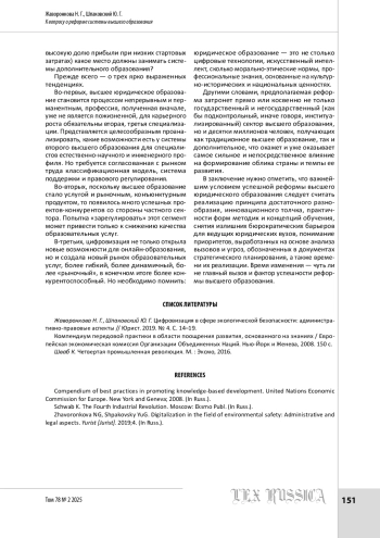 1. Жаворонкова Н. Г., Шпаковский Ю. Г. Цифровизация в сфере экологической безопасности: административно-правовые аспекты // Юрист. 2019. № 4. С. 14-19.