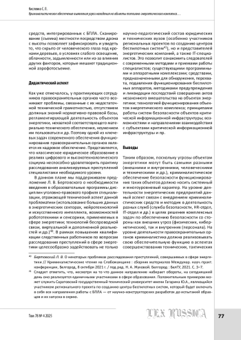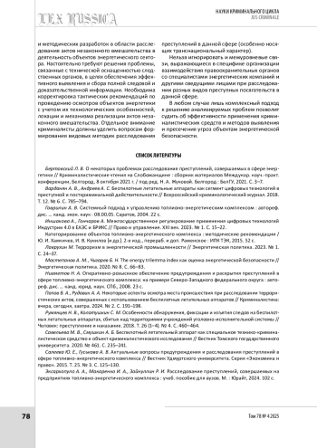 1. Бертовский Л. В. О некоторых проблемах расследования преступлений, совершаемых в сфере энергетики // Криминалистические чтения на Слобожанщине : сборник материалов Междунар. науч.-практ. конференции, Белгород, 8 октября 2021 г. / под ред. Н. А. Жуковой. Белгород : БелГУ, 2021. С. 3-7.
