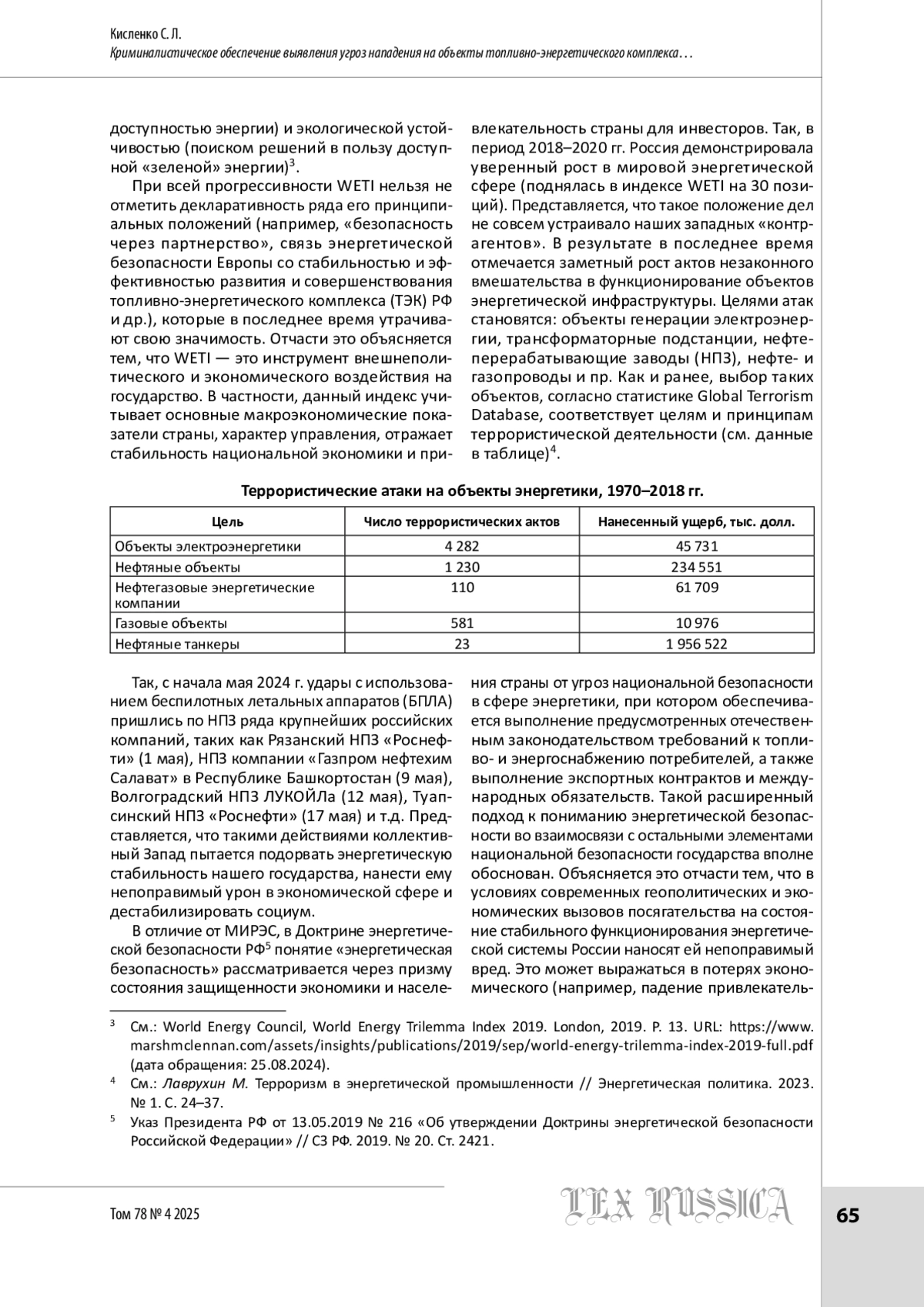 6. Лаврухин М. Терроризм в энергетической промышленности // Энергетическая политика. 2023. № 1. С. 24-37.