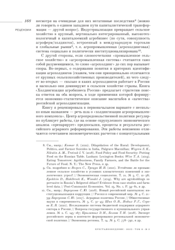2. 	Барсукова С. Ю. (2017). Аграрная политика России // Общественные науки и современность. № 5. С. 31-45.  EDN: ZFMKVL