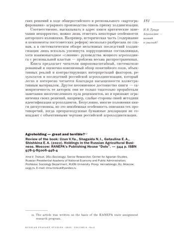 Рецензия на книгу: Узун В. Я., Шагайда Н. И., Гатаулина Е. А., Шишкина Е. А. (2022). Холдингизация агробизнеса России. М.: Издательский дом «Дело» РАНХиГС. - 344 с. ISBN 978-5-85006-446-4