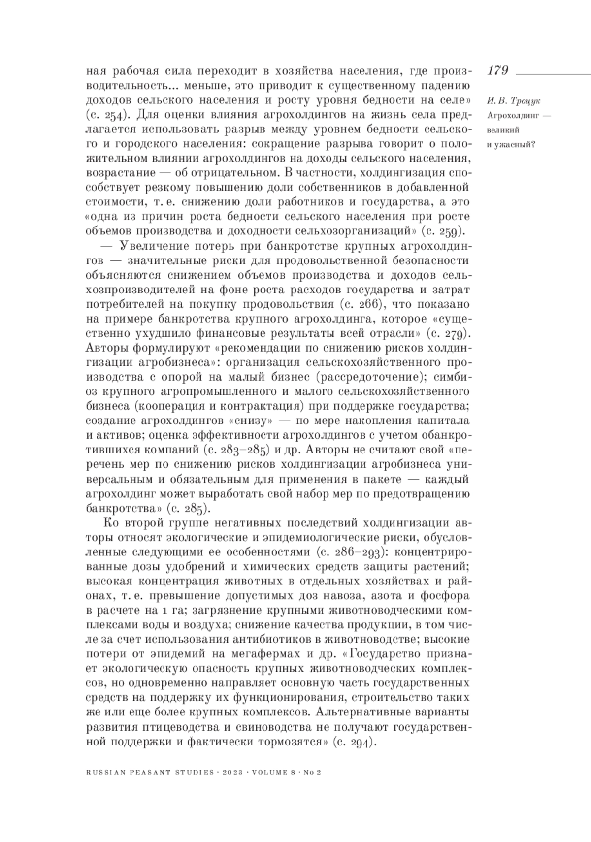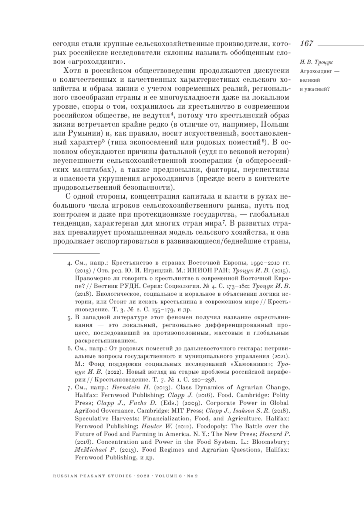 10. 	Троцук И. В. (2022). Новый взгляд на старые проблемы российской периферии // Крестьяноведение. Т. 7. № 1. С. 220-238.  EDN: FZFTCS