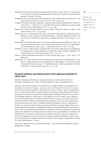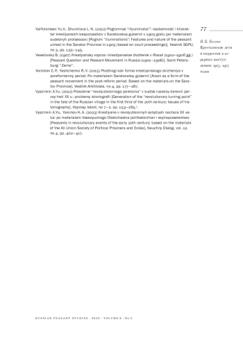 5. 	Вязинкин А. Ю. (2022). Поколение “революционного перелома” в судьбе русской деревни первой трети XX в.: проблемы историографии // Вопросы истории. № 7-2. С. 153-165.  EDN: IPECND