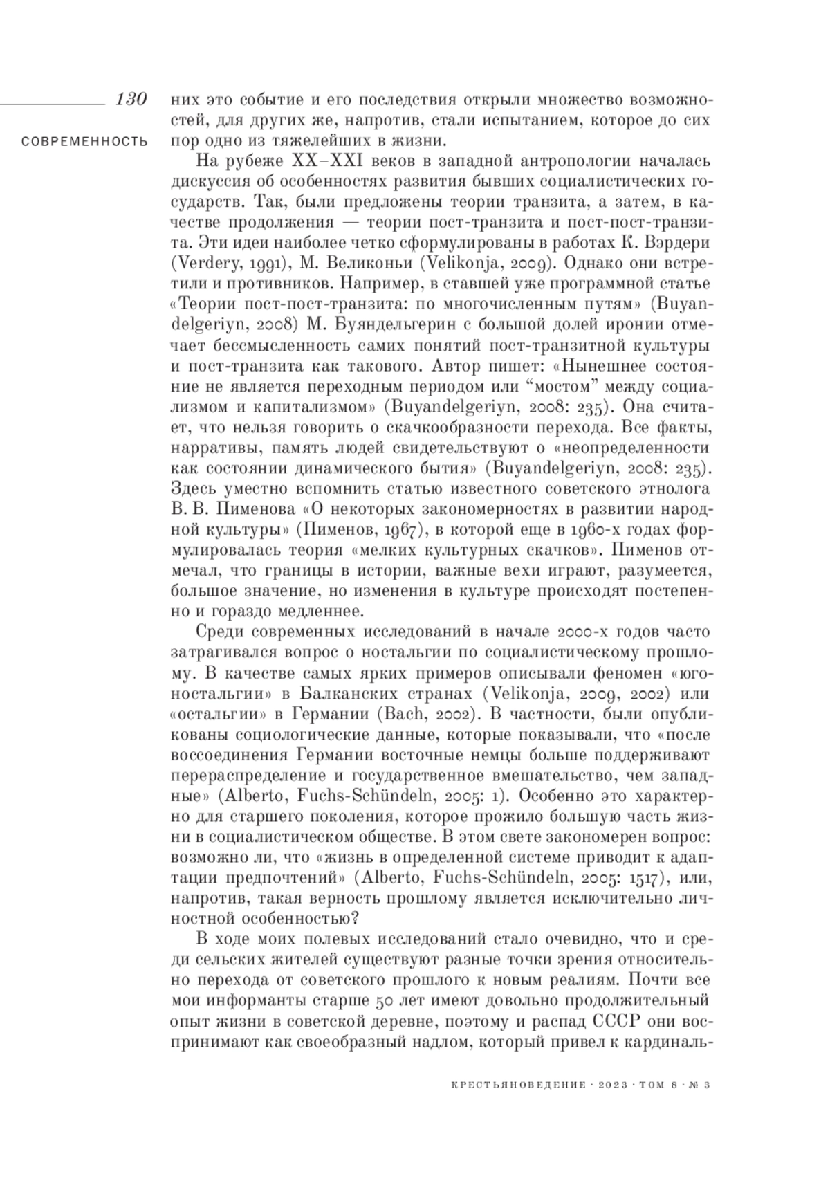 9. 	Buyandelgeriyn M. (2008). Post-post-transition theories: Walking on multiple paths // Annual Review of Anthropology. P. 235-250.  EDN: WNNWGD