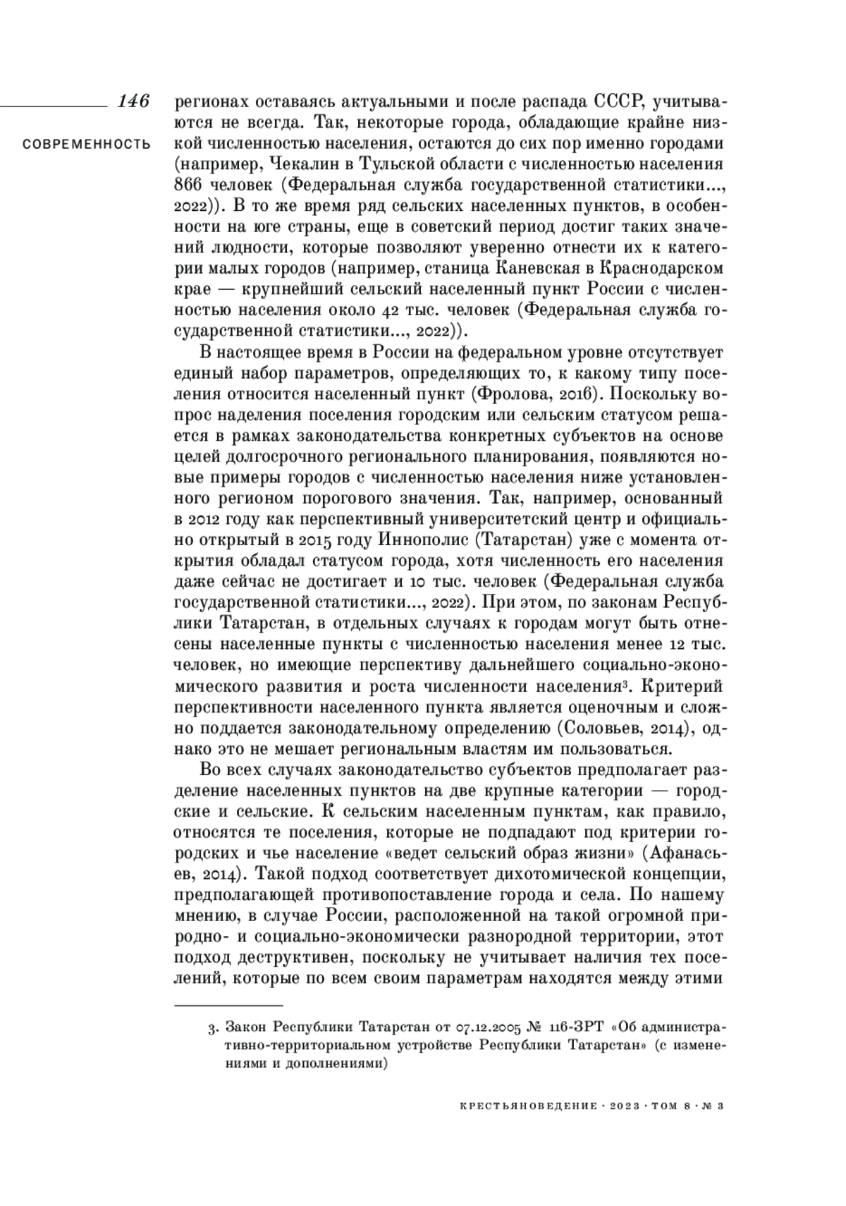 13. Нефедова Т. Г. (2013a). Большой, малый, средний город и село в России // География, градостроительство, архитектура: синтез наук и практик. С. 171-190. EDN: AFTXLY