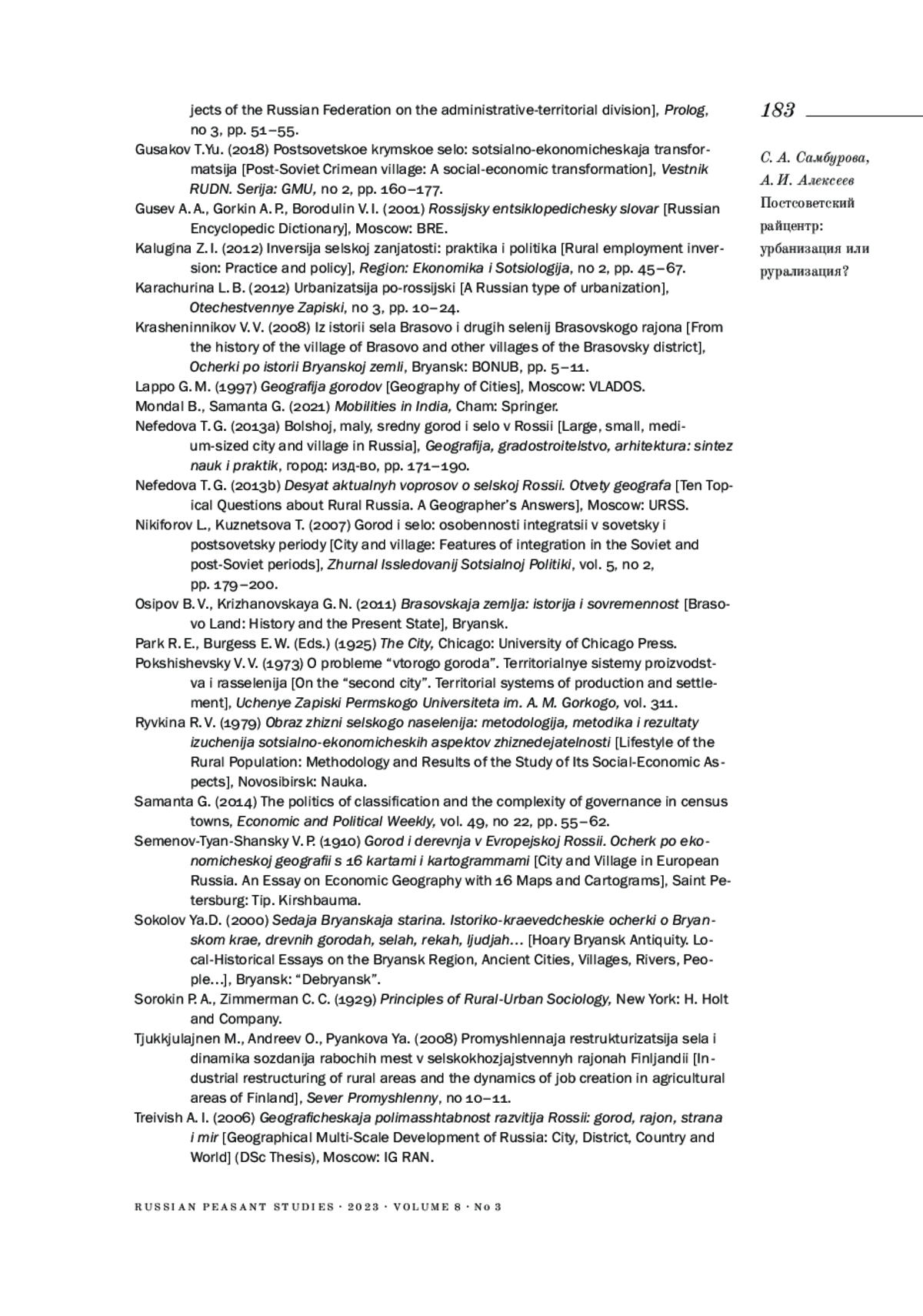 24. Чучкалов А. С., Алексеев А. И. (2019). “Новые” сельские населенные пункты - бывшие поселки городского типа // Известия Российской академии наук. Серия географическая. № 6. С. 18-34. EDN: YBSRZO