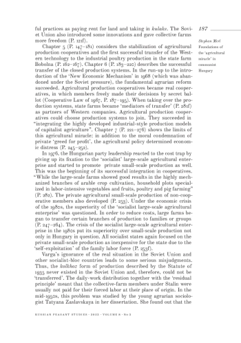 Review of the book: Varga Z. The Hungarian Agricultural Miracle? Sovietization and Americanization in a Communist Country. Transl. by F. T. Zsigó. Lexington Books, Lanham et al. 2021, xxix, 323 pp.