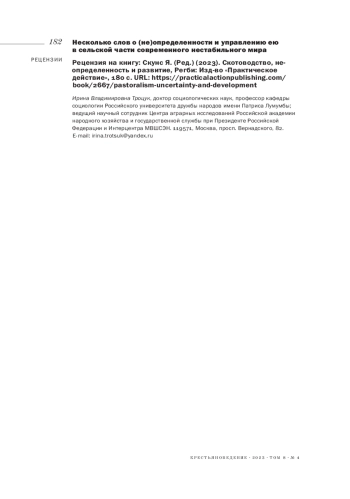 Рецензия на книгу: Скунс Я. (Ред.) (2023). Скотоводство, неопределенность и развитие, Регби: Изд-во «Практическое действие», 180 с. URL: https://practicalactionpublishing. com/ book/2667/pastoralism-uncertainty-and-development