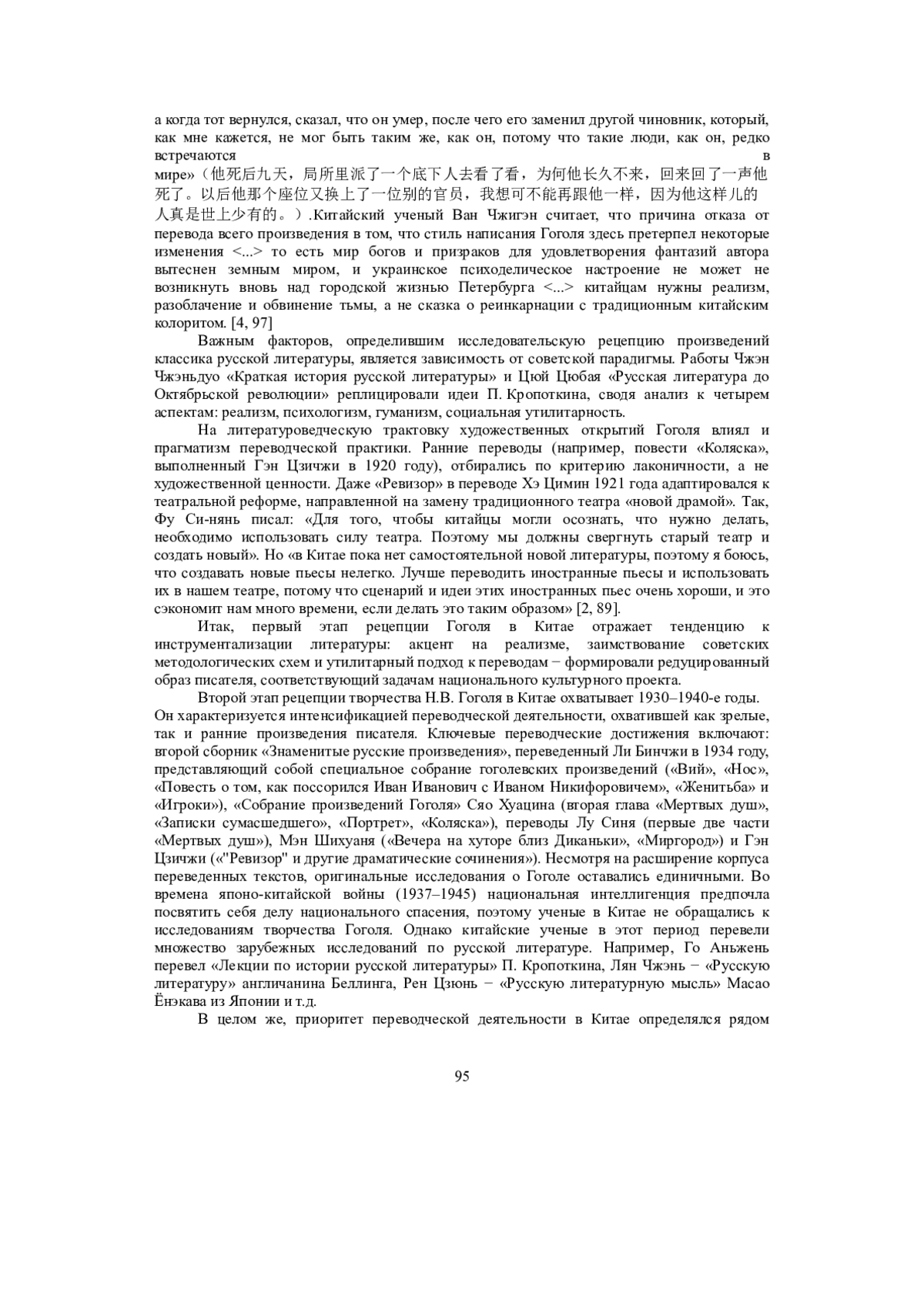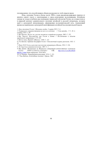 4. 	Ван Чжигэн. Восемьдесят лет Гоголя в Китае // Исследования в области зарубежной литературы. С. 97-101.