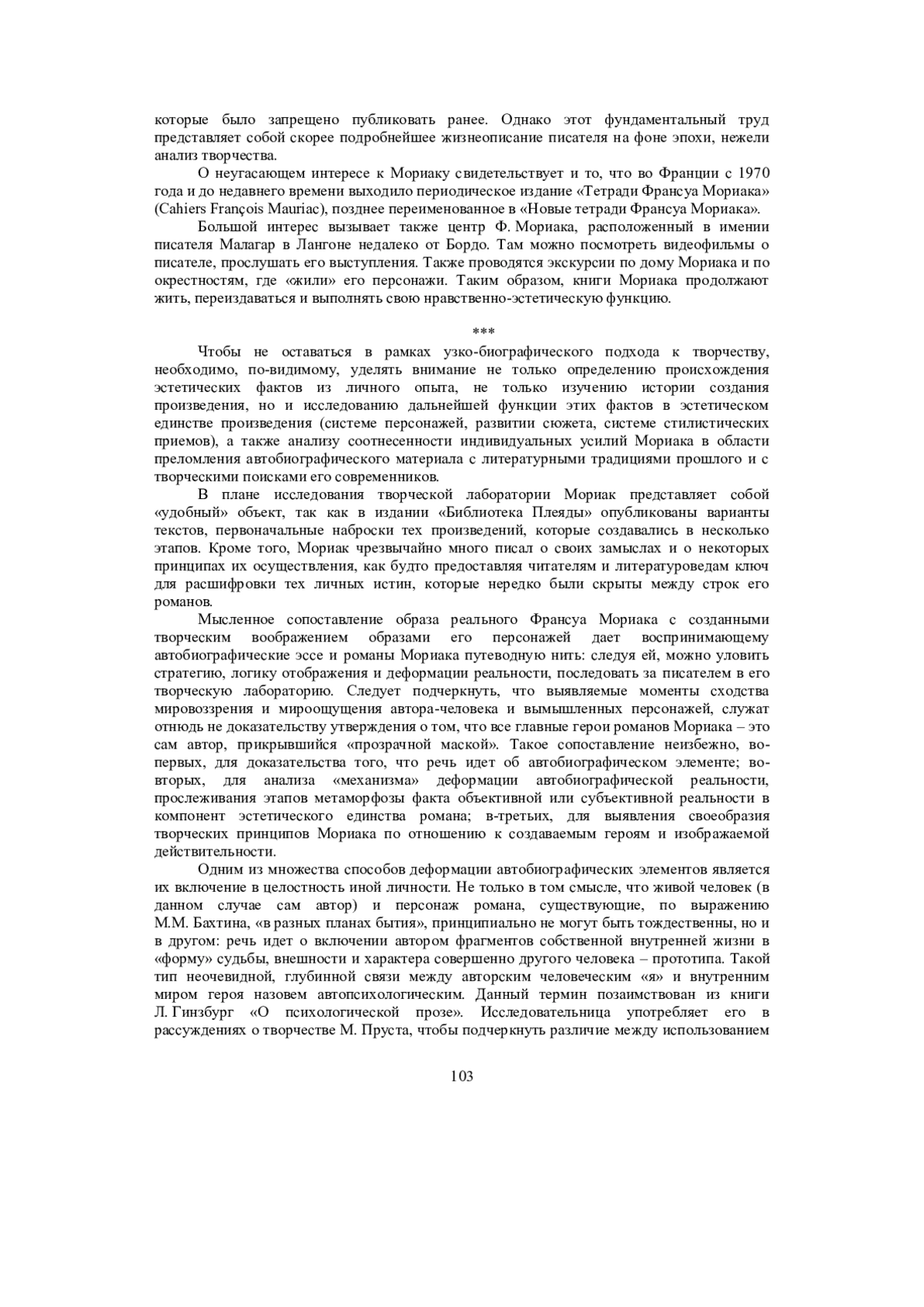 В статье обосновывается необходимость подробного и системного анализа роли автобиографических элементов в творчестве Ф. Мориака для выявления глубинных связей внутреннего мира писателя с его персонажами.