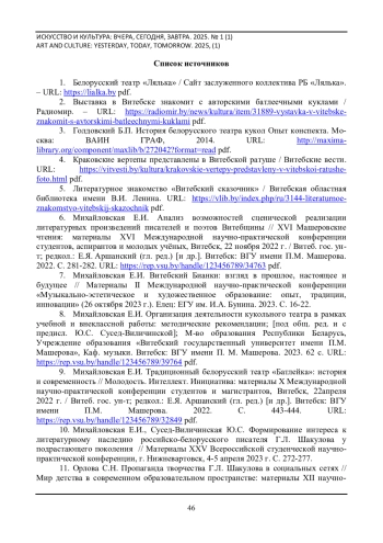 2. Выставка в Витебске знакомит с авторскими батлеечными куклами / Радиомир. - URL: https://radiomir.by/news/kultura/item/31889-vystavka-v-vitebske-znakomit-s-avtorskimi-batleechnymi-kuklami.pdf.