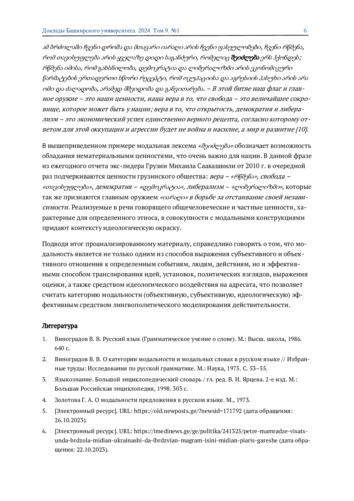 4. 	Золотова Г. А. О модальности предложения в русском языке. М., 1973.