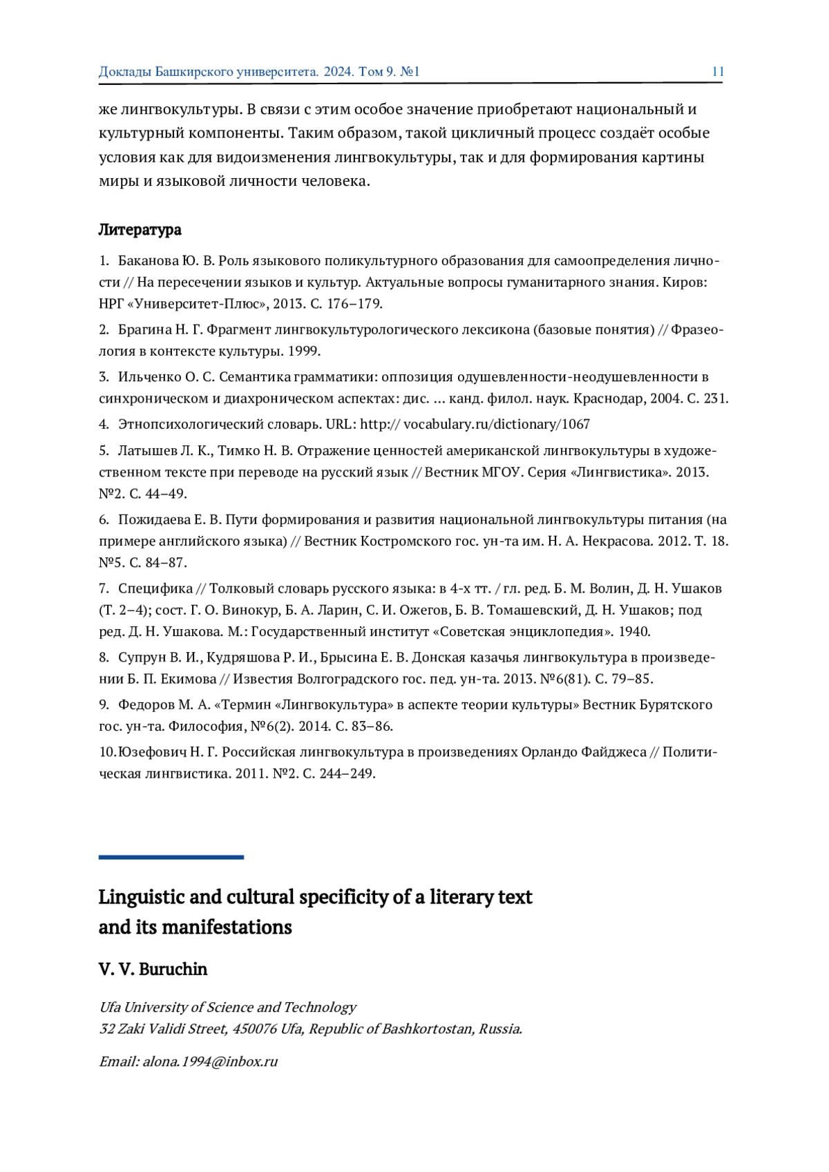 9. Федоров М. А. “Термин “Лингвокультура” в аспекте теории культуры” Вестник Бурятского гос. ун-та. Философия, №6(2). 2014. С. 83-86.