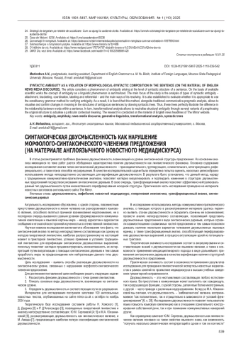 В статье рассматривается проблема феномена двусмысленности, возникающей на уровне синтаксической структуры предложения. На основании анализа имеющихся по теме работ дается обобщенная характеристика понятия двусмысленности как лингвистического феномена. Основное содержание исследования составляет анализ типов синтаксической двусмысленности - присоединительного, группирующего, сочинительного, категоризующего, референциального, а также поиск способов ее разрешения. В качестве исследовательской задачи была определена попытка оценить, насколько целесообразно использование метода непосредственно составляющих для верификации двусмысленности. В результате было установлено, что данный метод, наряду с традиционным коммуникативно-прагматическим анализом, позволяет наглядно визуализировать и подтвердить изменения в структурах двусмысленных предложений посредством рисования синтаксических деревьев. В свою очередь, трансформационный анализ позволяет эффективно нейтрализовать данный тип двусмысленности путем множественного перефразирования исходной структуры. Практическая часть исследования проведена на материале новостных заголовков англоязычного сайта The Mirror.
