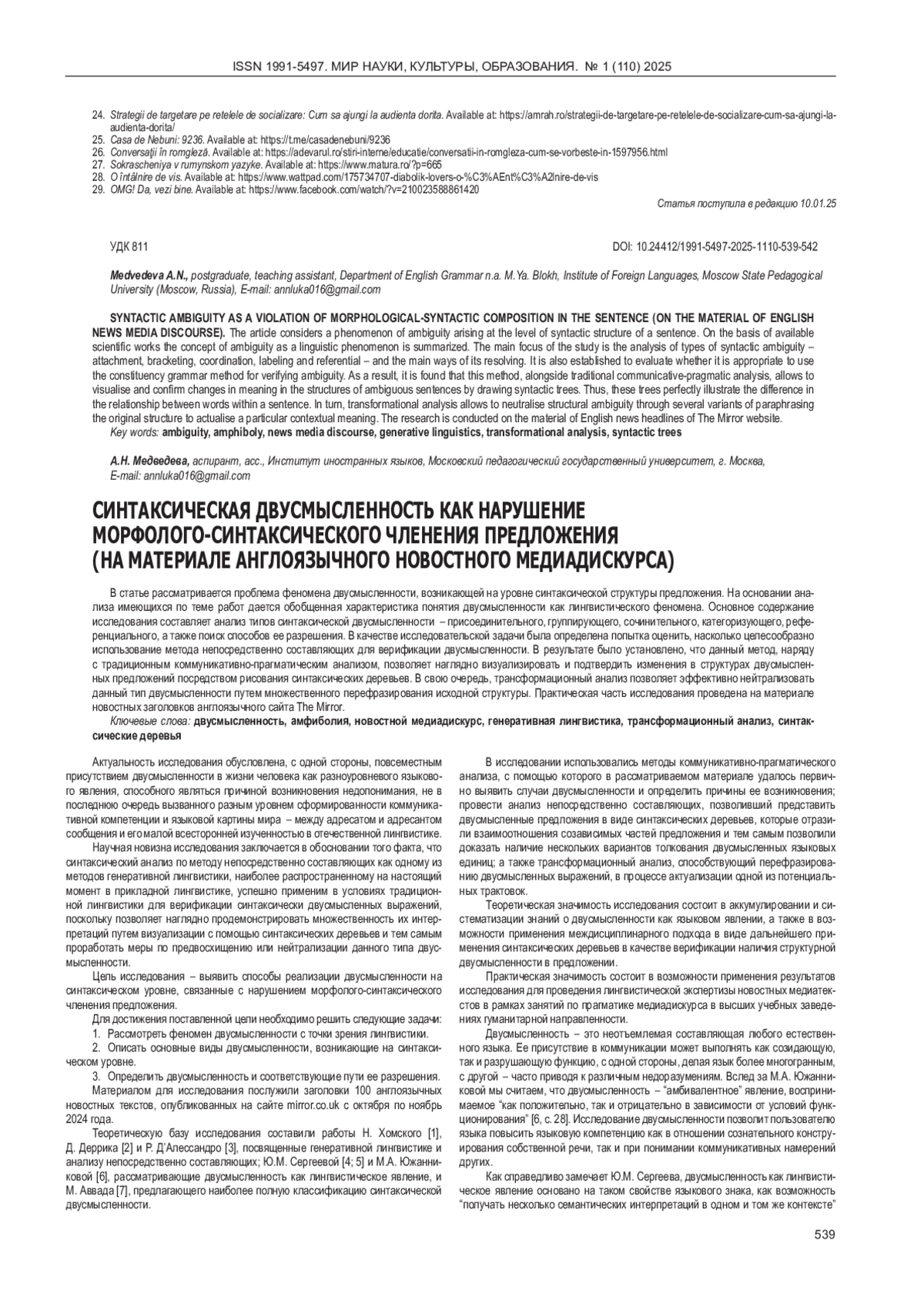 7. Фролова О.А. Англицизмы как функционально-прагматические маркеры цифровой коммуникации русскоговорящей молодежи. Филологические науки. Вопросы теории и практики. 2024; Т. 17, № 9: 3062-3070. EDN: JWYOHR
