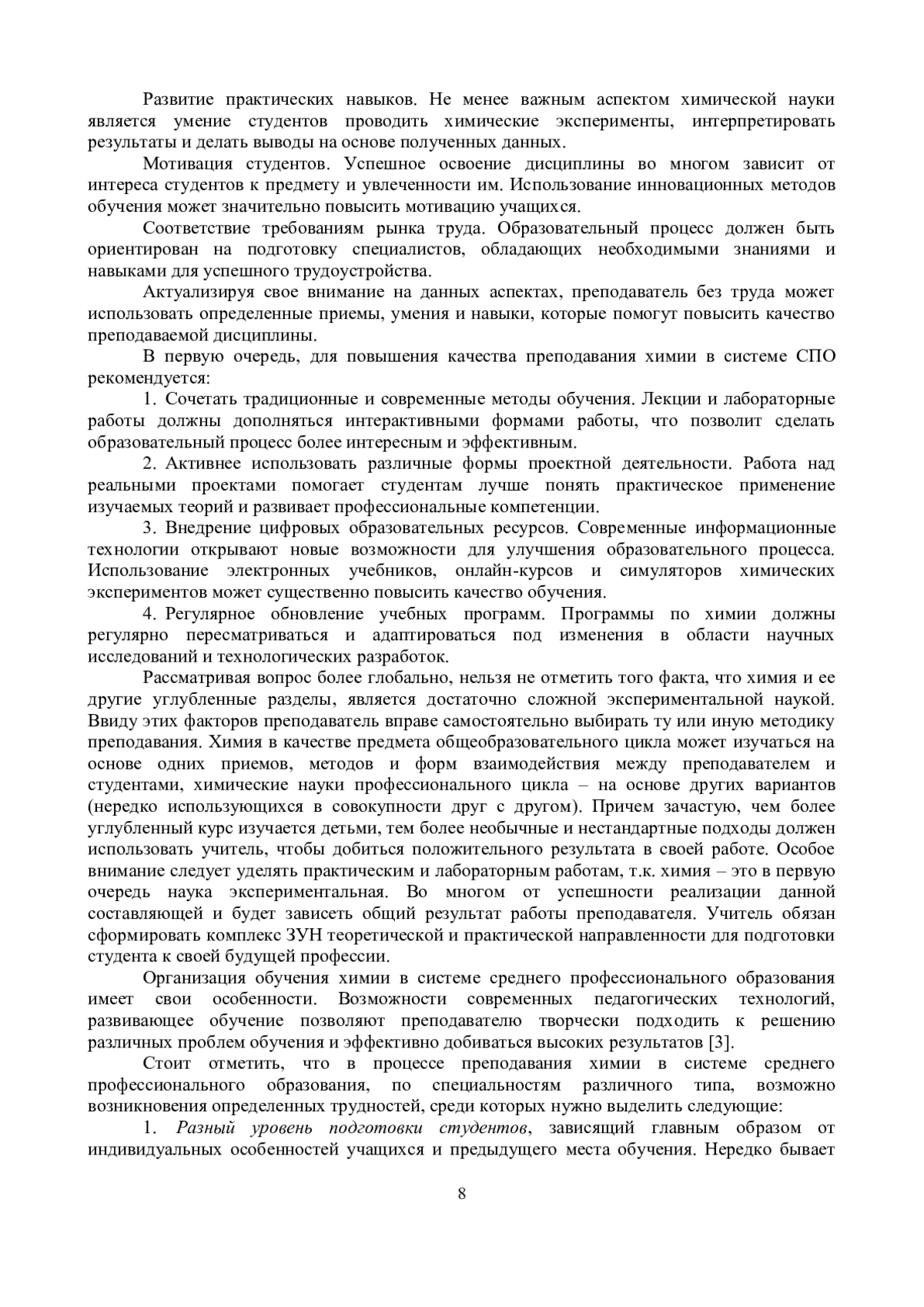 3. 	Овчинникова, М. В. Особенности преподавания химии в системе среднего профессионального образования / М. В. Овчинникова // Состояние, направления и перспективы развития среднего профессионального образования: сборник материалов Международной заочной научно-практической конференции, Чебоксары, 25 марта 2016 года / Ответственный за выпуск Г.Г. Волков. - Чебоксары: Чебоксарский кооперативный институт (филиал) автономной некоммерческой образовательной организации высшего образования Центросоюза Российской Федерации “Российский университет кооперации”, 2016. - С. 116-120.