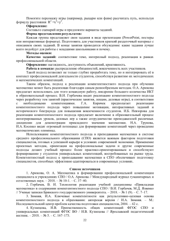2. 	Горбачев, В. И. Технология реализации учебной дисциплины “Прикладная математика” в содержании компетентностного подхода СПО / В.И. Горбачев, М.Д. Язвенко // Ученые записки Брянского государственного университета. - 2018. - № 1 (9). - С. 7-17.