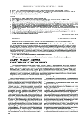 3. 	Богданова Е.В. О некоторых аспектах изучения термина идиолект в отечественной и западной лингвистике. Вестник Ленинградского государственного университета имени А.С. Пушкина. 2009; Т. 1, № 4: 100-108.