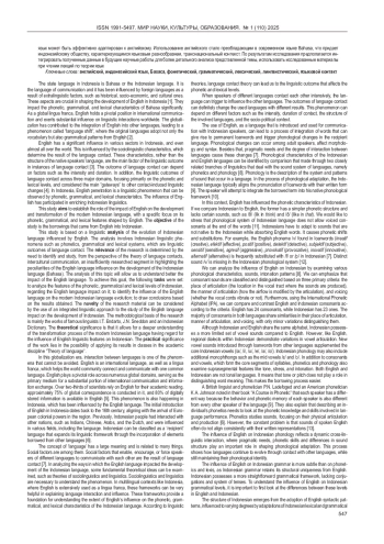 В данной статье рассматривается влияние английского языка на развитие индонезийского языка (Bahasa). Цель исследова ния – определить степень воздействия английского языка на формирование современного индонезийского языка на фонетическом, грамматическом и лексическом уровнях. Анализ проводится на основе отобранного материала. Рассматриваемый лингвистический феномен показывает, как индонезийский язык может быть эффективно адаптирован к английскому. Использование английского стало преобладающим в современном языке Bahasa, что придает индонезийскому обществу, характеризующимся языковым разнообразием, транснациональный контекст. По результатам исследования предполагается интегрировать полученные данные в будущие научные работы для более детального анализа представленной темы, использовать исследованные материалы при чтении лекций по теории язык.