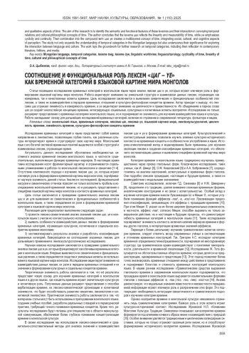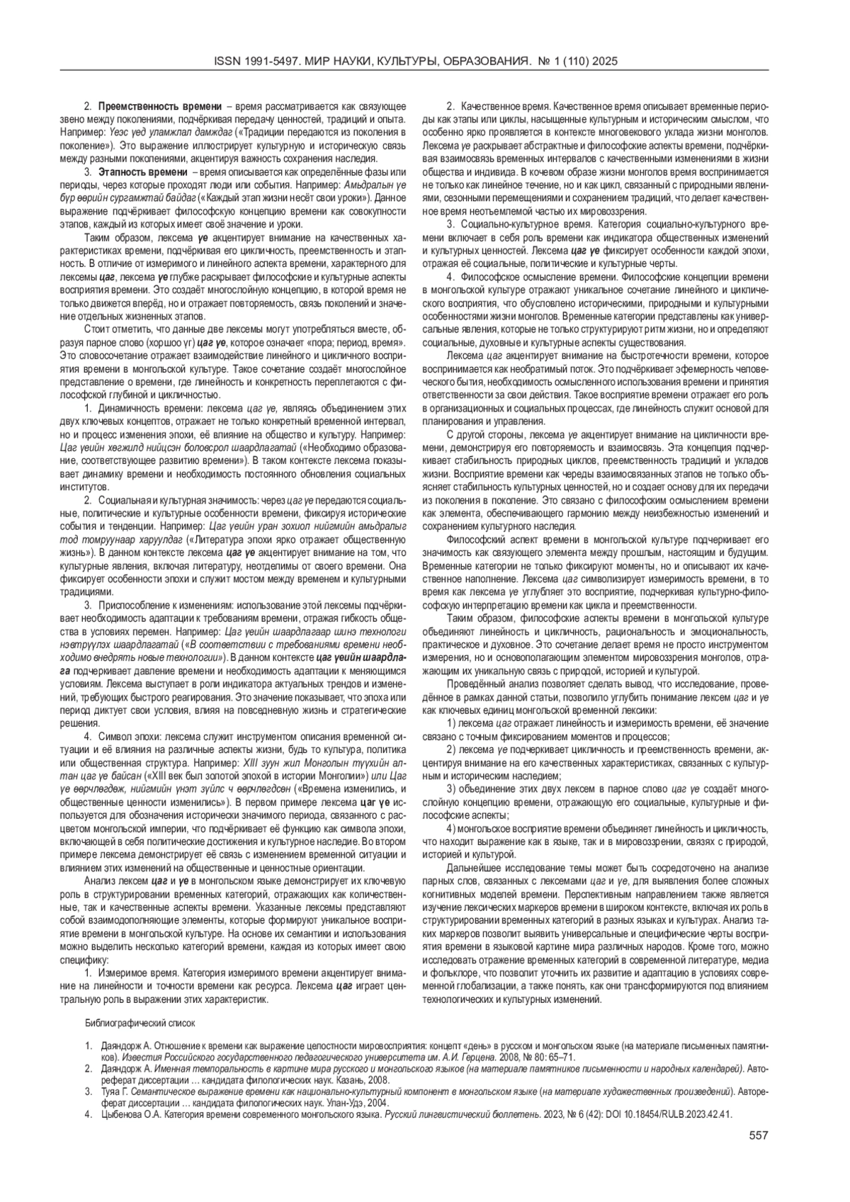 4. 	Цыбенова О.А. Категория времени современного монгольского языка. Русский лингвистический бюллетень. 2023, № 6 (42):. DOI: 10.18454/RULB.2023.42.41