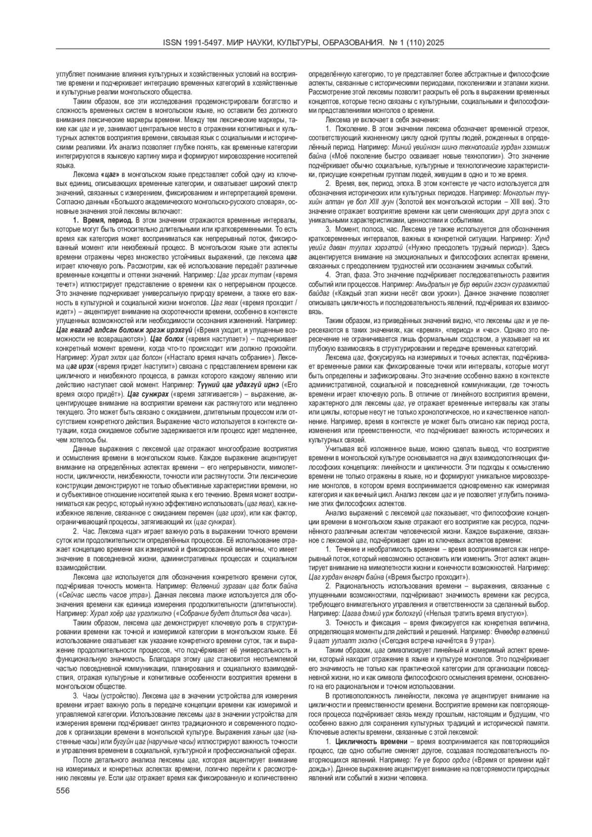 Исследование временных категорий в языке представляет собой важное направление в лингвистике, позволяющее глубже понять, как различные культуры интерпретируют время и структурируют свою картину мира. Монгольский язык с его богатой системой временных понятий выделяется особой структурой и взаимосвязью лексем, отражающих время.