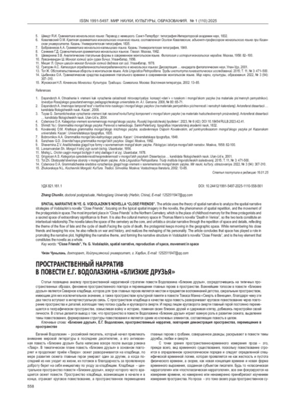 5. Сюй Е., Цю Ю. За молчанием - интерпретация “Близких друзей” с точки зрения неоисторизма и культурной поэтики. Журнал технологического института Чанчжоу (издание по социальным наукам). 2024; Т. 42, № 1: 78-79.