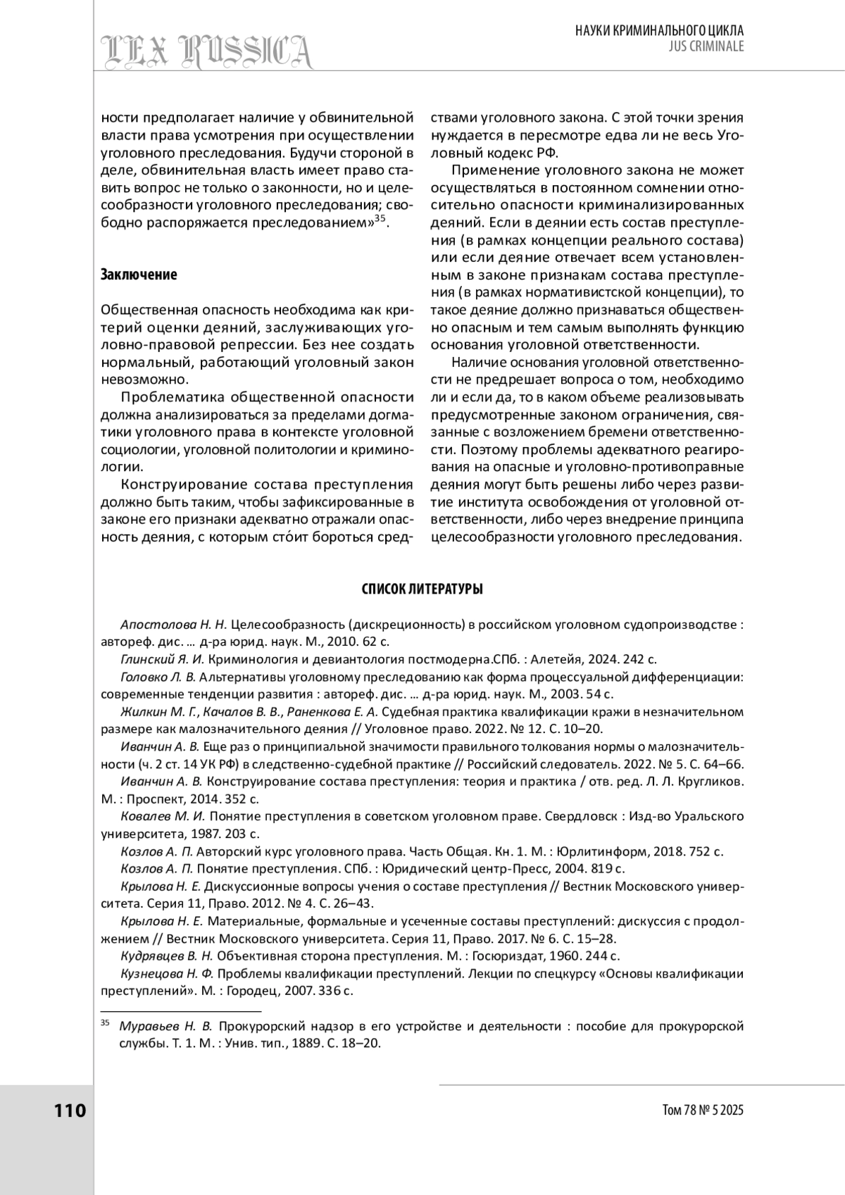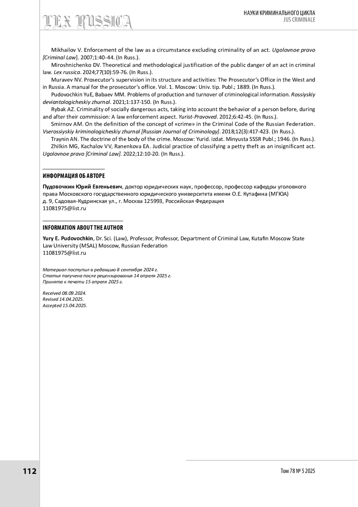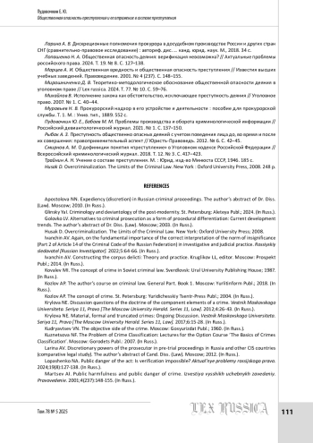 17. Мирошниченко Д. В. Теоретико-методологическое обоснование общественной опасности деяния в уголовном праве // Lex russica. 2024. Т. 77. № 10. С. 59-76.