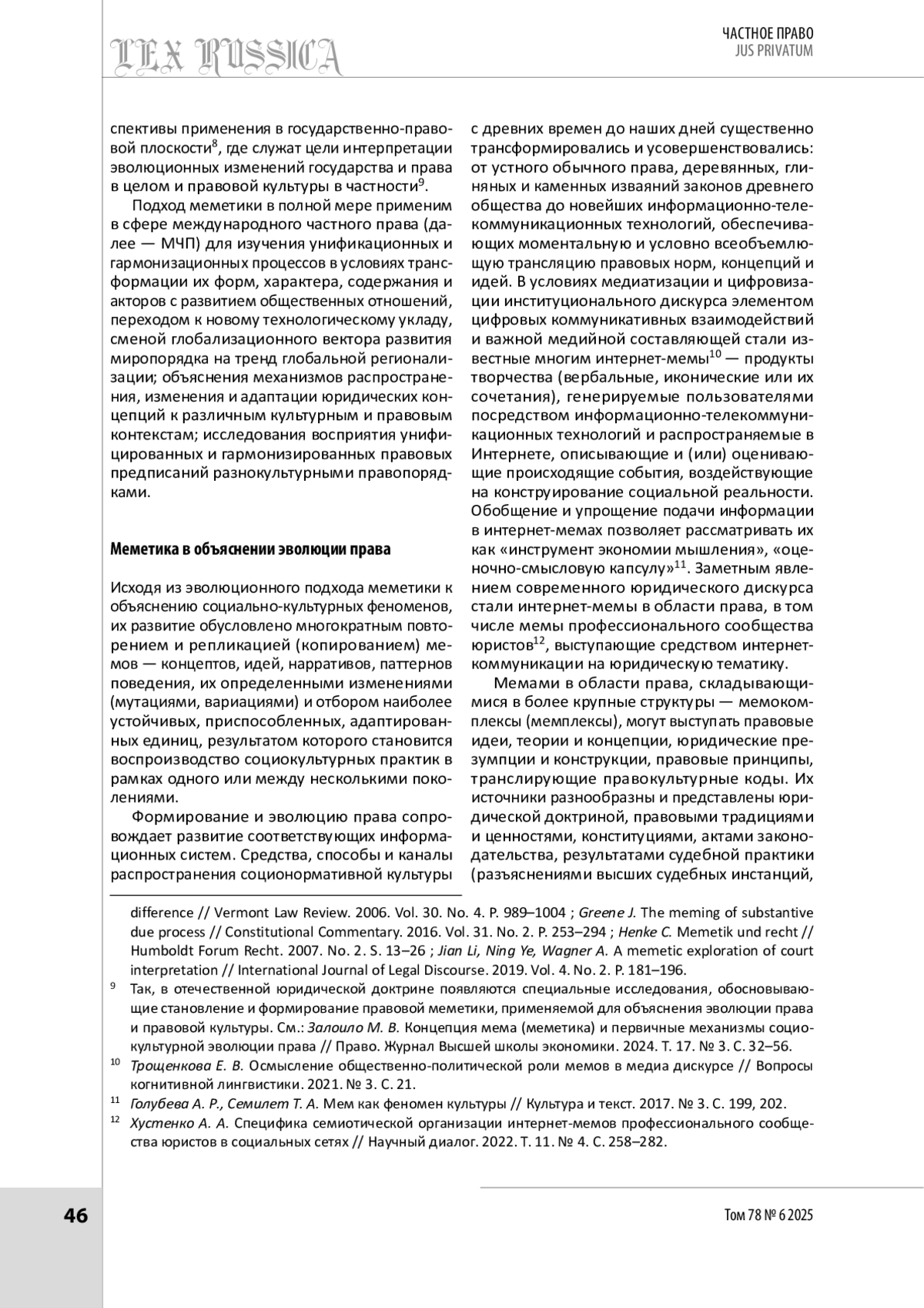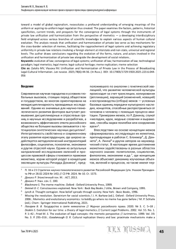 5. Залоило М. В. Концепция мема (меметика) и первичные механизмы социокультурной эволюции права // Право. Журнал Высшей школы экономики. 2024. Т. 17. № 3. С. 32-56.