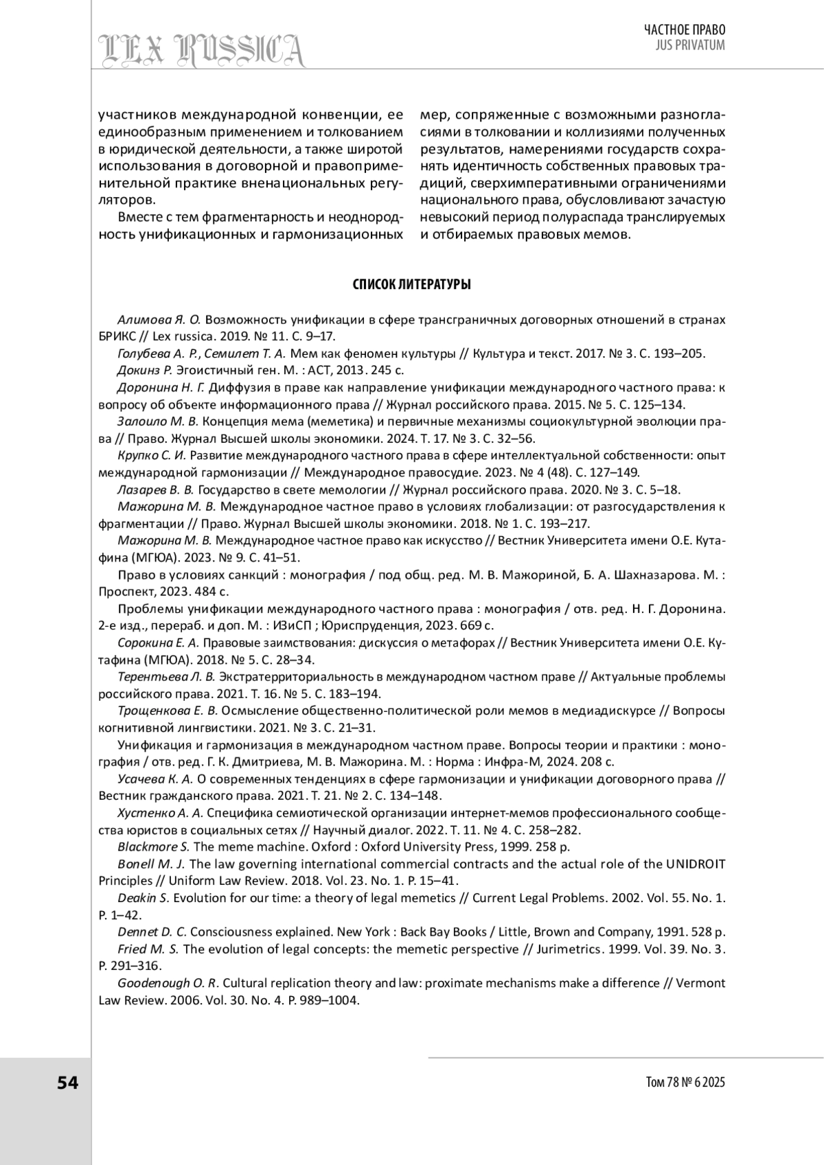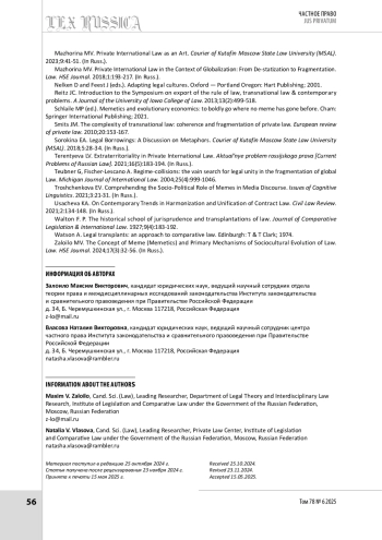 9. Мажорина М. В. Международное частное право как искусство // Вестник Университета имени О.Е. Кутафина (МГЮА). 2023. № 9. С. 41-51.
