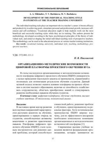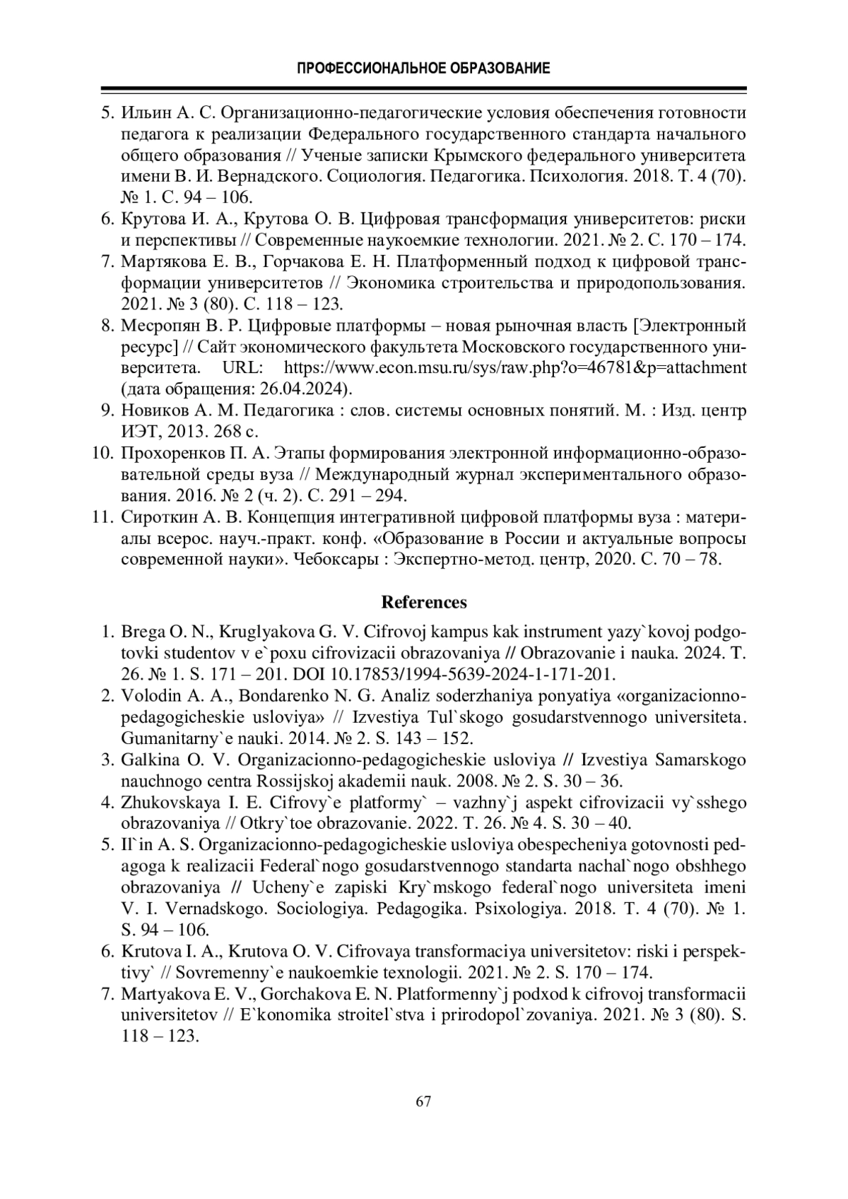 7. Мартякова Е. В., Горчакова Е. Н. Платформенный подход к цифровой трансформации университетов // Экономика строительства и природопользования. 2021. № 3 (80). С. 118 - 123.