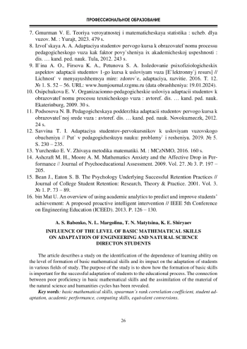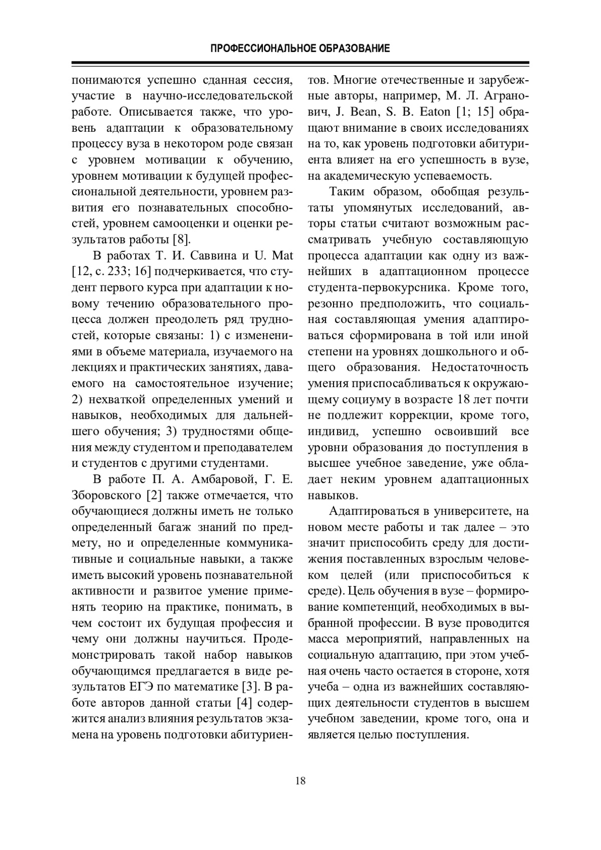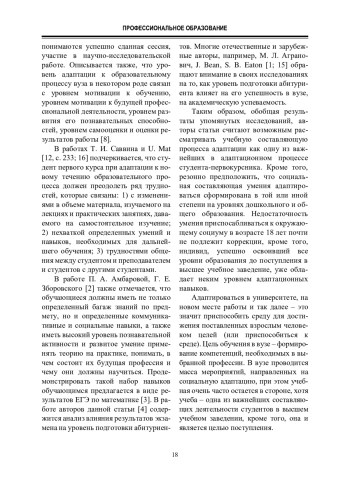 12. Саввина Т. И. Адаптация студентов-первокурсников к условиям вузовского обучения // Путь в педагогическую науку: проблемы и решения. 2019. № 5. С. 230 - 235.