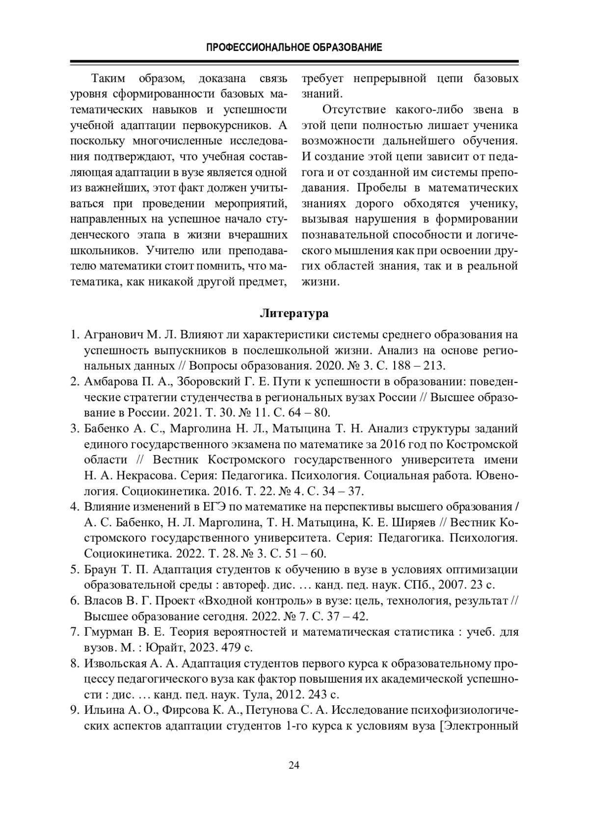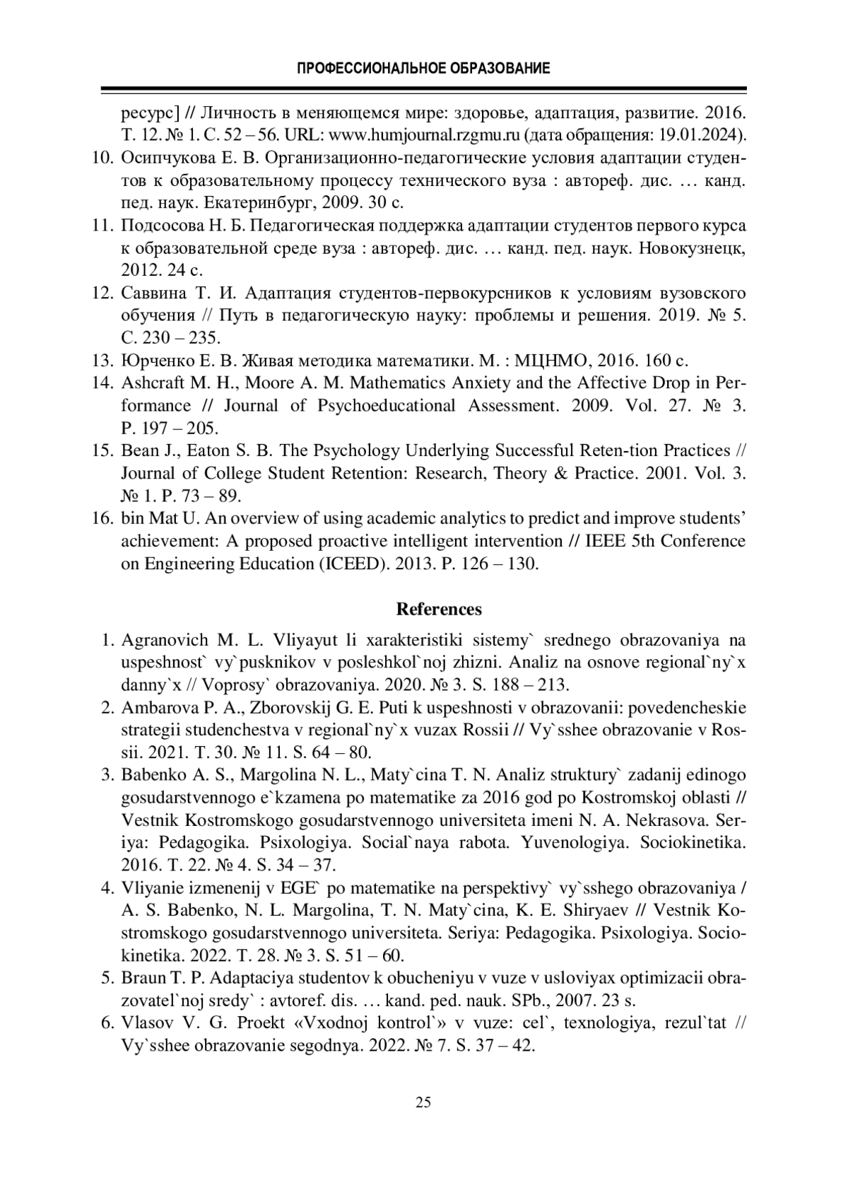 6. Власов В. Г. Проект «Входной контроль» в вузе: цель, технология, результат // Высшее образование сегодня. 2022. № 7. С. 37 - 42.