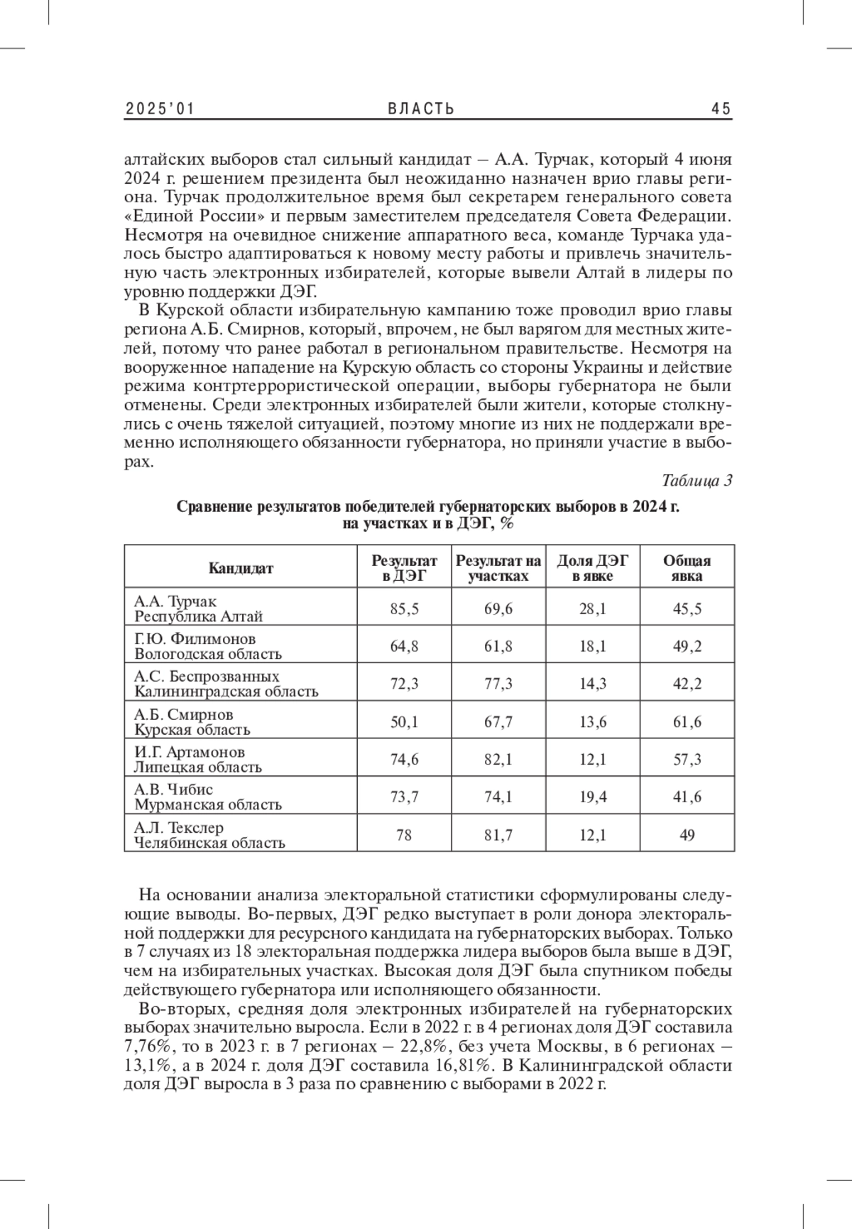 2. 	Федоров В.И. 2024. Влияние ДЭГ на явку избирателей на выборах в России в 2021-2023 гг. - Вестник Кемеровского государственного университета. Сер. Политические, социологические и экономические науки. Т. 9. № 3(33). С. 349-358.