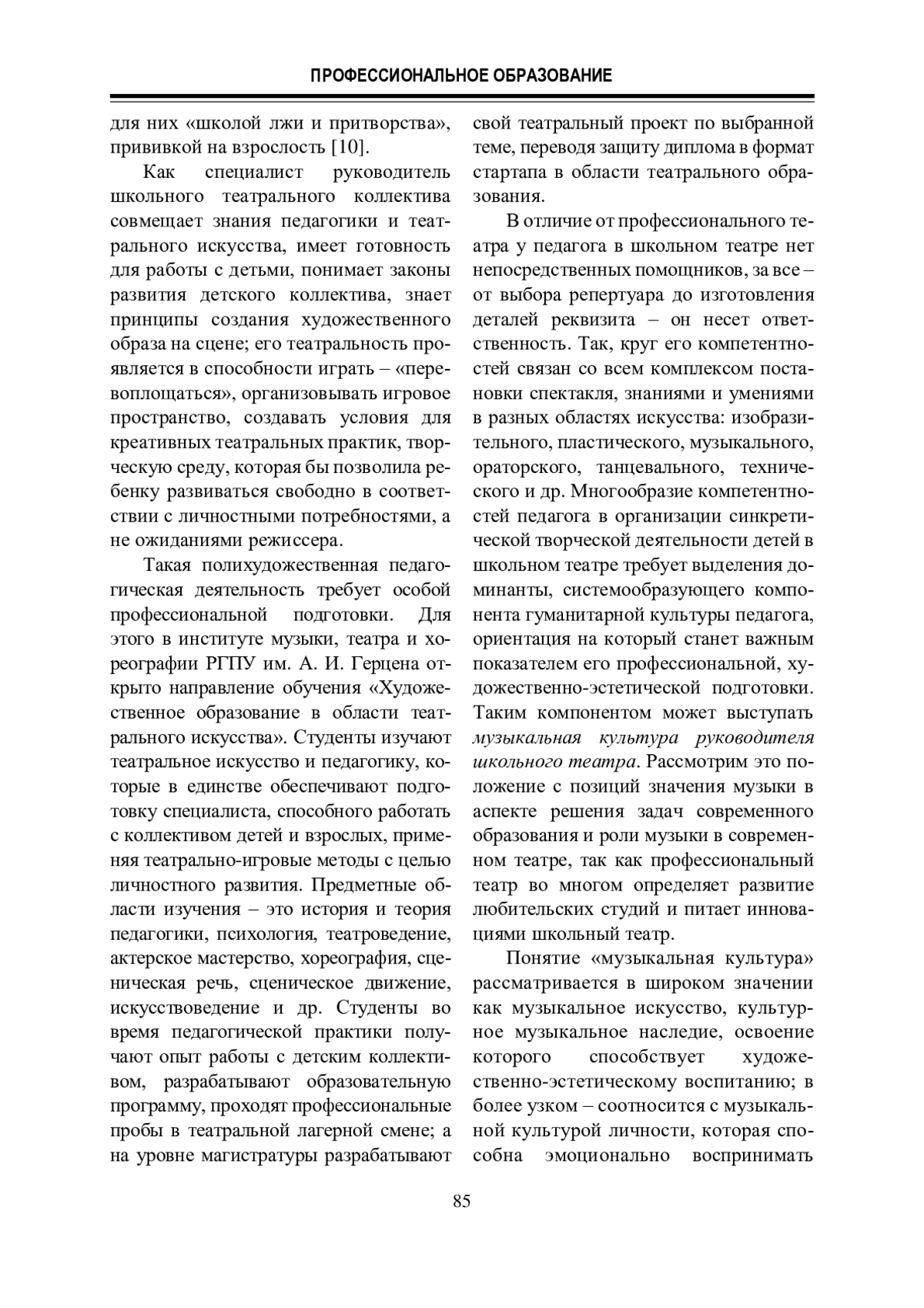 Такая полихудожественная педагогическая деятельность требует особой профессиональной подготовки. Для этого в институте музыки, театра и хореографии РГПУ им. А. И. Герцена открыто направление обучения «Художественное образование в области театрального искусства».