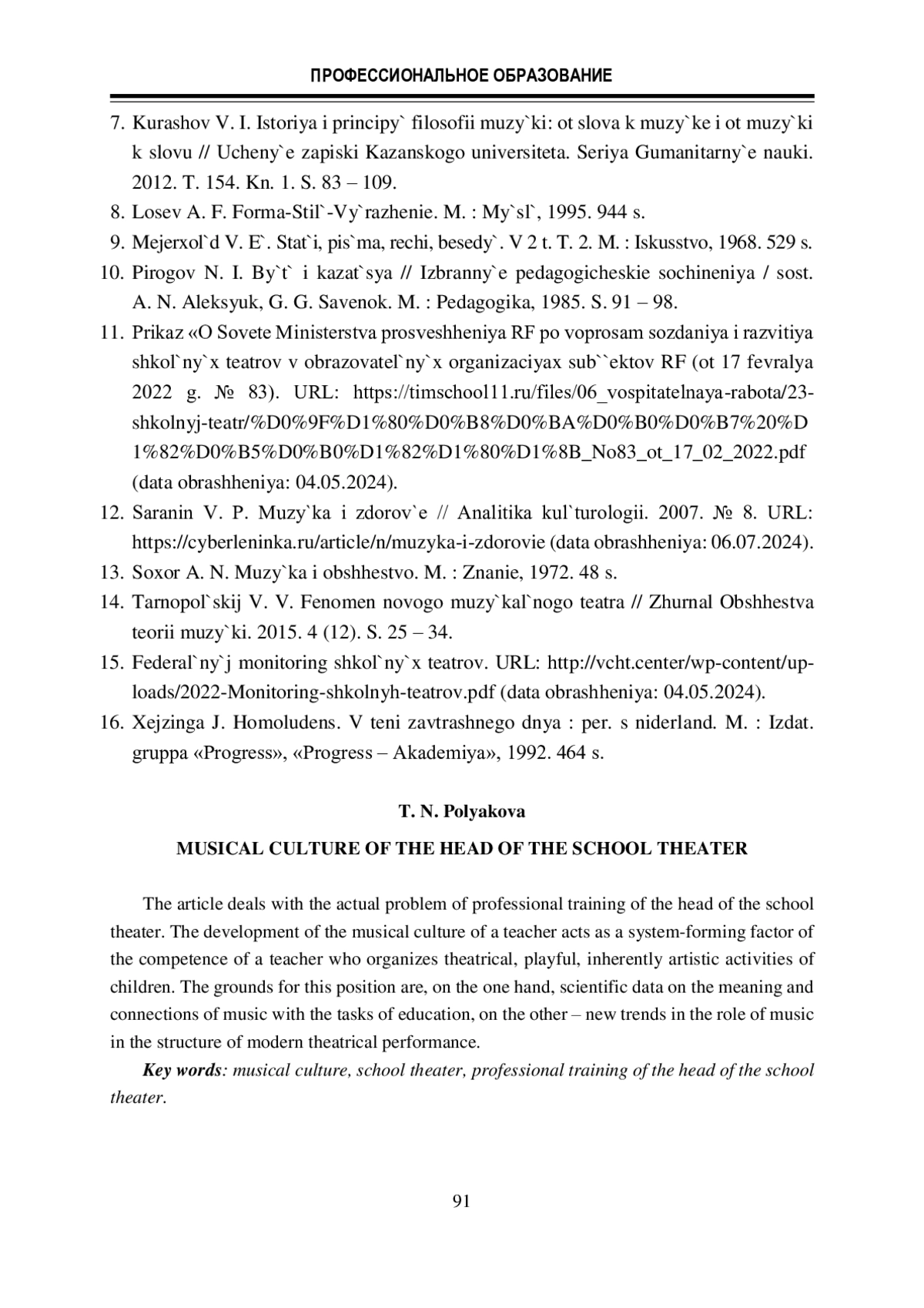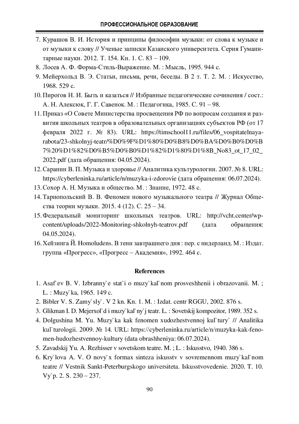 7. Курашов В. И. История и принципы философии музыки: от слова к музыке и от музыки к слову // Ученые записки Казанского университета. Серия Гуманитарные науки. 2012. Т. 154. Кн. 1. С. 83 - 109.