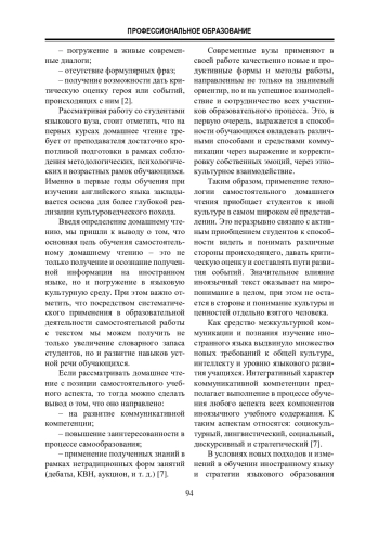 Рассматривая работу со студентами языкового вуза, стоит отметить, что на первых курсах домашнее чтение требует от преподавателя достаточно кропотливой подготовки в рамках соблюдения методологических, психологических и возрастных рамок обучающихся.