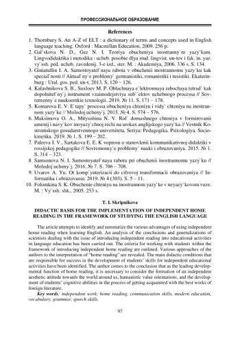 3. Гиниатуллин И. А. Самостоятельная работа в обучении иностранному языку как специальности // Актуальные проблемы германистики, романистики и русистики. Екатеринбург : Урал. гос. пед. ун-т, 2013. С. 120 - 126.