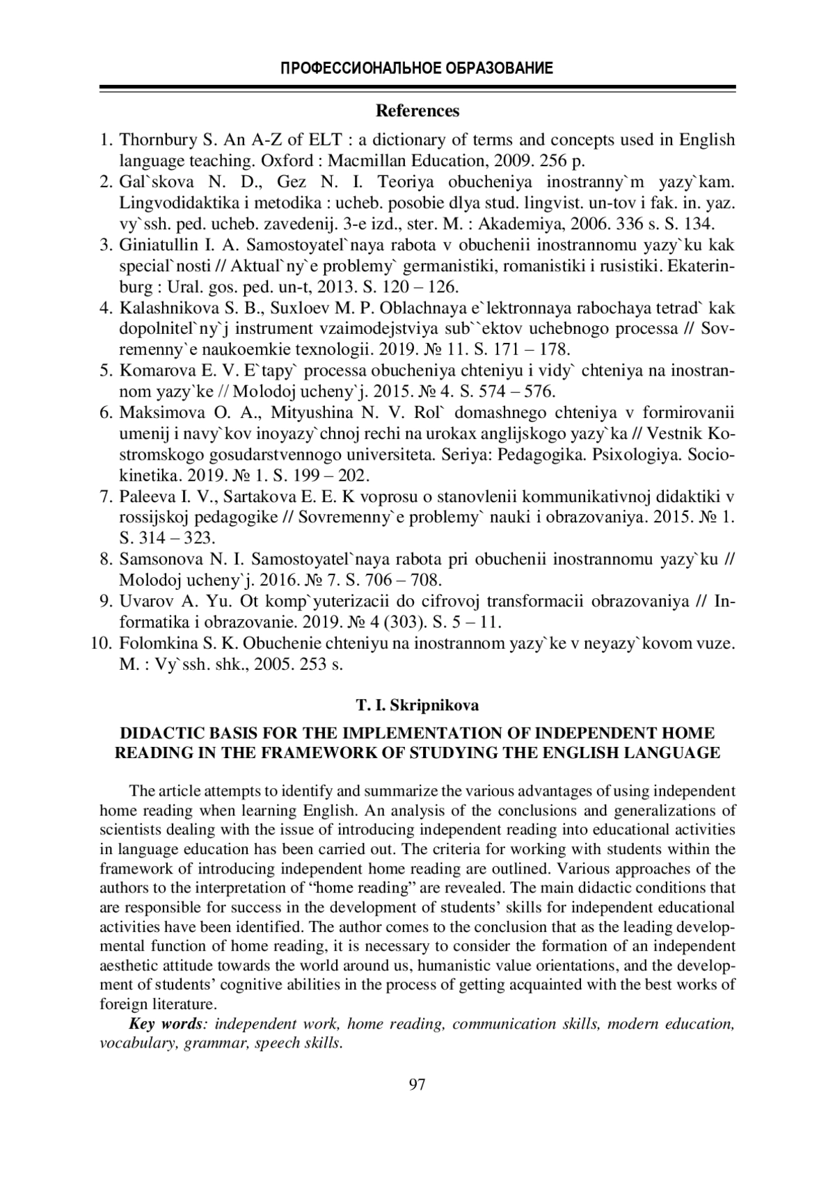 1. Thornbury S. An A-Z of ELT : a dictionary of terms and concepts used in English language teaching. Oxford : Macmillan Education, 2009. 256 p.