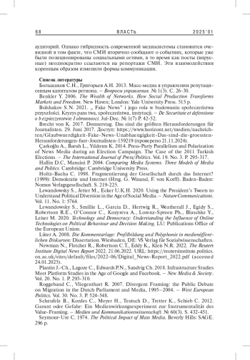 4. 	Brecht von K. 2017. Donnerstag. Das sind die größten Herausforderungen für Journalisten. 29. Juni 2017. Доступ: https://www.horizont.net/medien/nachrichten/Glaubwuerdigkeit-Fake-News-Unabhaengigkeit-Das-sind-die-groessten-Herausforderungen-fuer-Journalisten-159219 (проверено 21.11.2024).